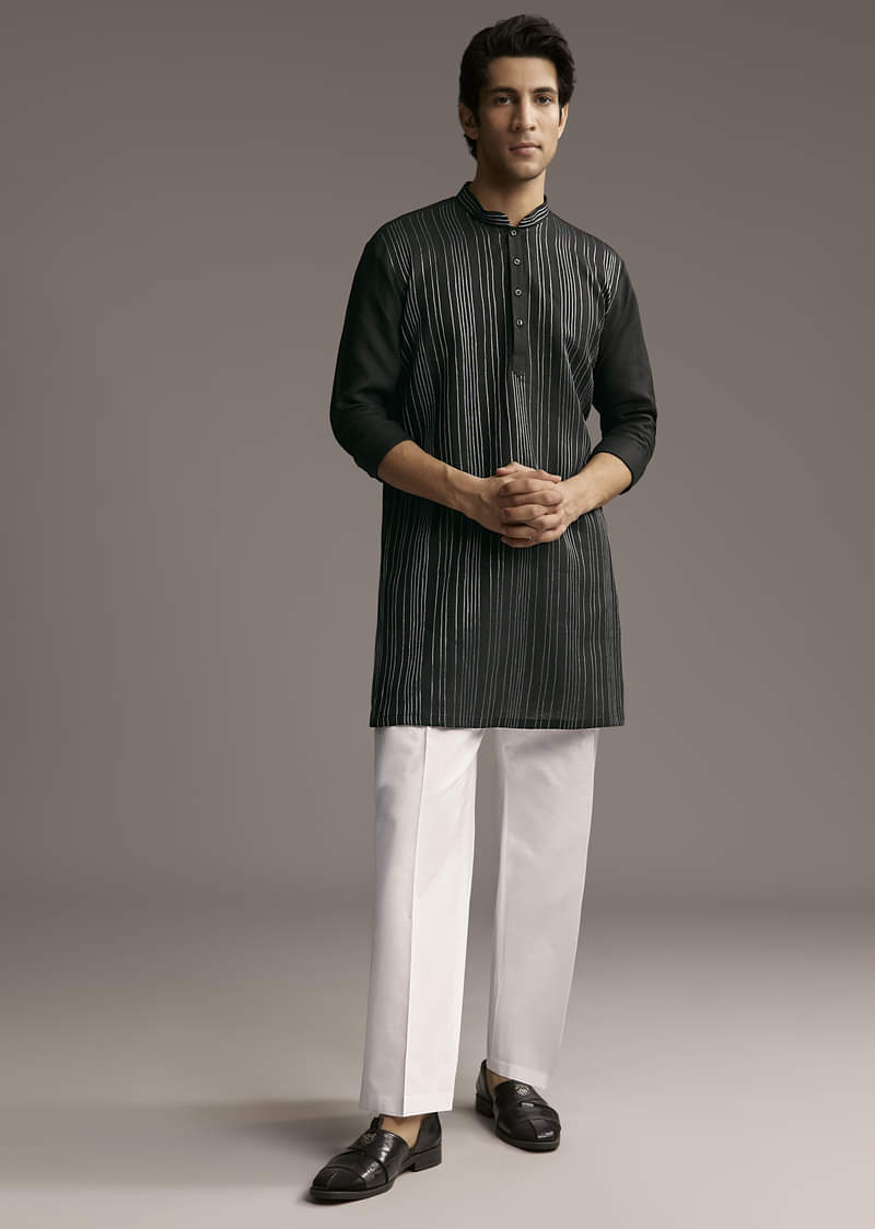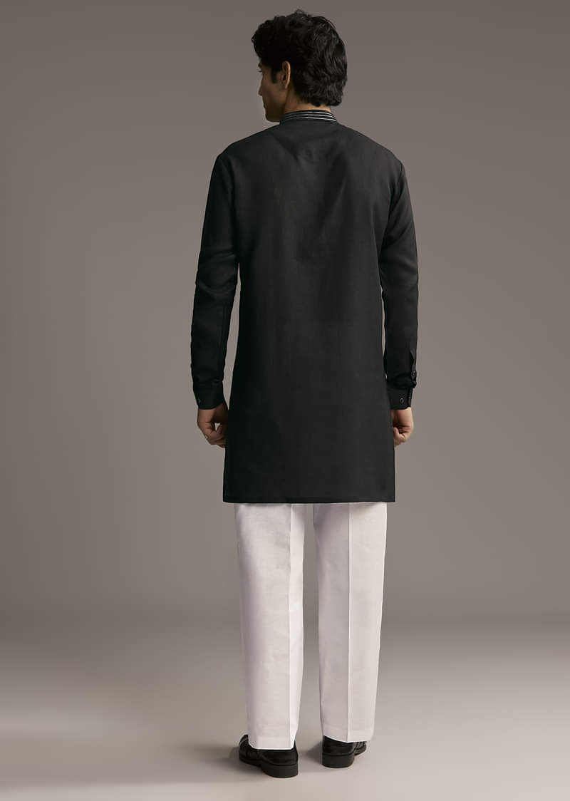 - Product Speciality : A black linen kurta set for men always makes a powerful impression. With thread and resham embroidery, this one adds subtle detail to the bold tone. Awarded as the Most Trusted Brand, we're delivering styles you love, just as promised.