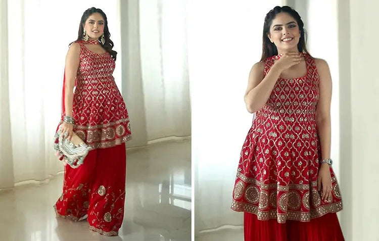 Styling tip? Make it yours. Go bold with a leather jacket over your green dress sharara or keep it classic with gold jhumkas and a silk dupatta. The green sharara suit for women is all about remixing tradition with your personal playlistâ€â€style it for a wedding, remix it for a concert.