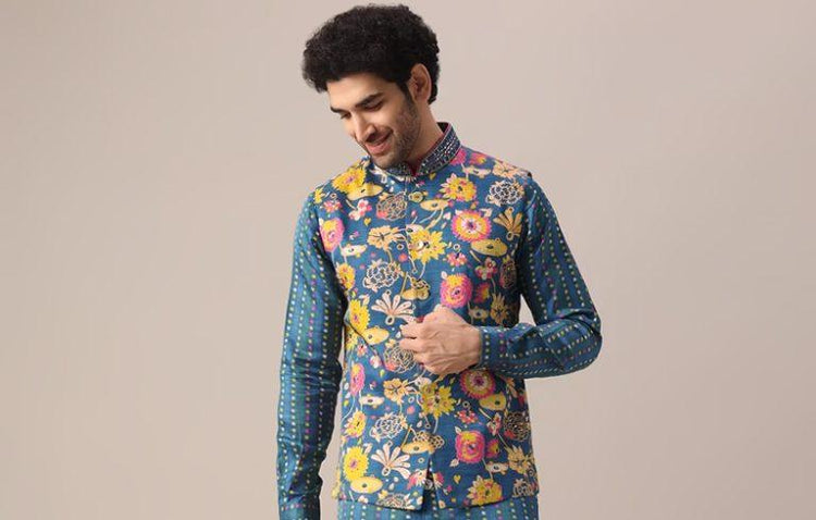 Men can get ready for Indian weddings in their bandhgala jacket outfit. A timeless, heavy and elegant men's Indo-western dress like a bandhgala can be worn the way it is for low maintenance or paired with traditional mojaris and kolhapuris to embrace the experimentation and style. -