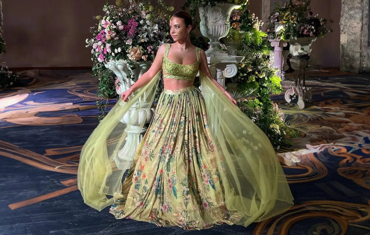 Navy Blue And Orange Zari Embroidered Lehenga Set