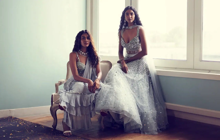 Lavender Organza Tissue Lehenga Set With Sequins And Bead Work