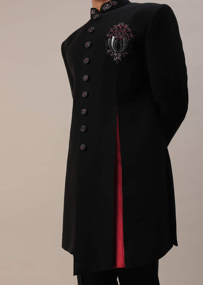 Sherwani, kurta set with a bandi, achkan, dhoti kurta set, and bandhgalas are the common types of groom outfit for wedding.