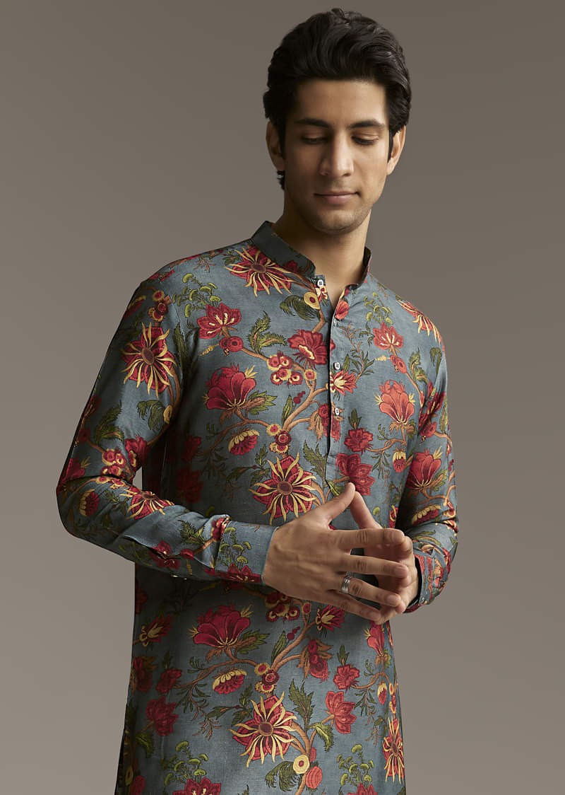 - Product Speciality : Fresh tones always hit right, and a green silk designer kurta for men is no exception. The floral detail gives it a contemporary twist on a traditional look. Awarded as the Most Trusted Brand, we're delivering styles you love, just as promised.