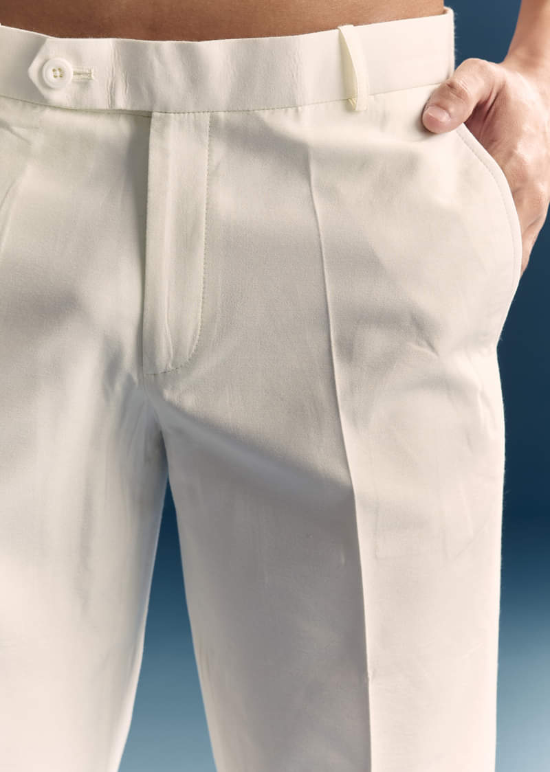 Fit Tips:Expect a tidy shoulder line and light shaping at the waist, with trousers that keep a clean seat and straight leg for relaxed movement.