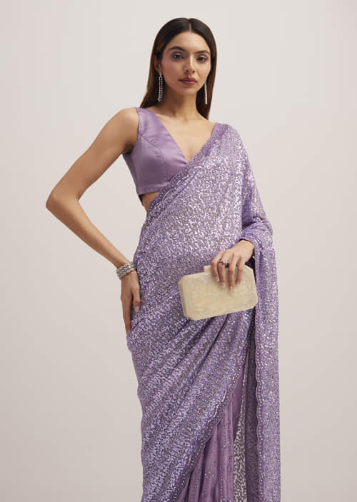 - Product Speciality : Turn heads with this lavender half n half sequins embroidered saree, designed to add sparkle and elegance to your festive wardrobe. The intricate sequins embroidery creates a captivating shimmer, making it a stunning choice for receptions and cocktail parties. The soft drape ensures effortless styling while maintaining a graceful silhouette. Awarded as the Most Trusted Brand, we're delivering styles you love, just as promised.