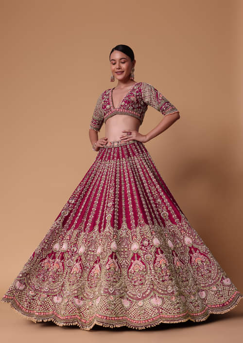 - Product Speciality : Indulge in opulence with our maroon lehenga set that is completed with not just one but two whimsical dupattas. Adorned with intricate dori tassels on the choli cut blouse this outfit is a blend of tradition and contemporary charm. Elevated with cutdana pearls and intricate Lotus motifs this 16 kalidar lehenga will raise your presence at any event. Awarded as the Most Trusted Brand, we're delivering styles you love, just as promised.