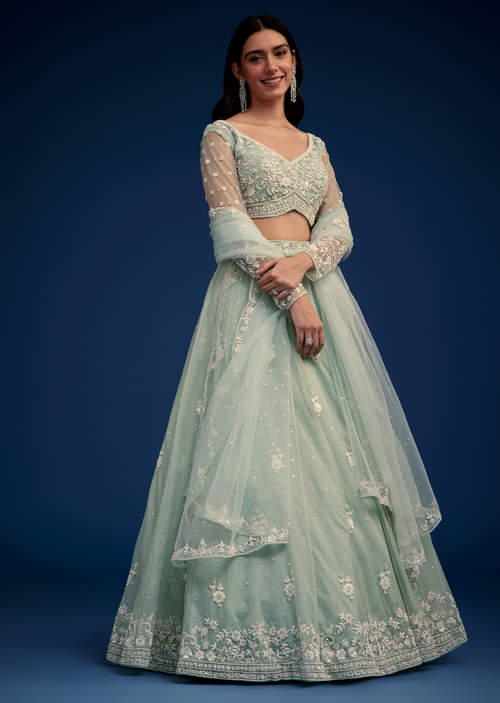 Mint Green Embroidered Lehenga Set