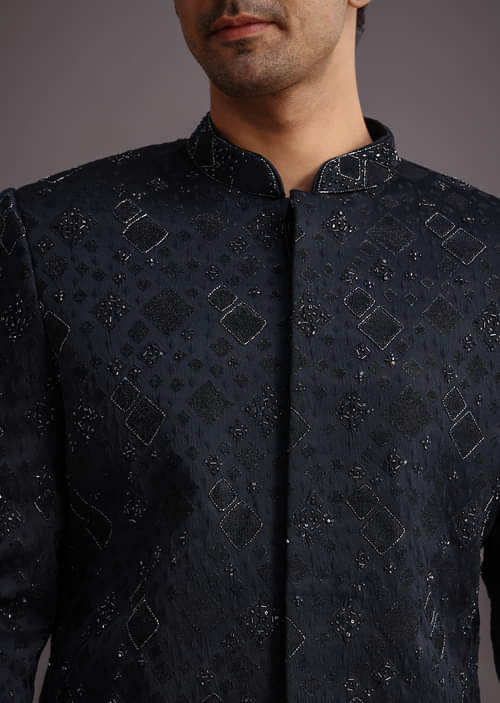 Navy Blue Cutdana Embroidered Indowestern Suit
