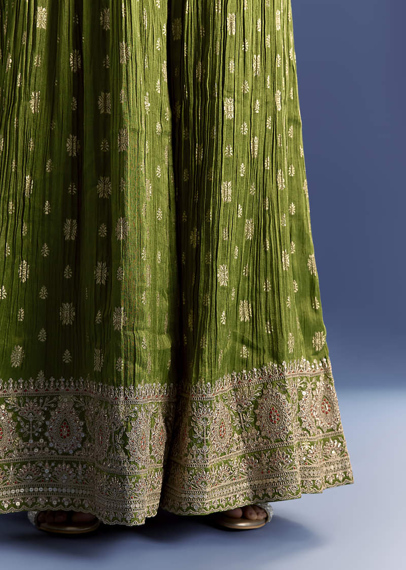 Orange Tissue Kurta Set With Zari Palazzo And Floral Dupatta