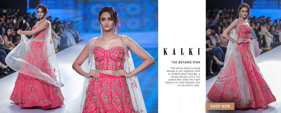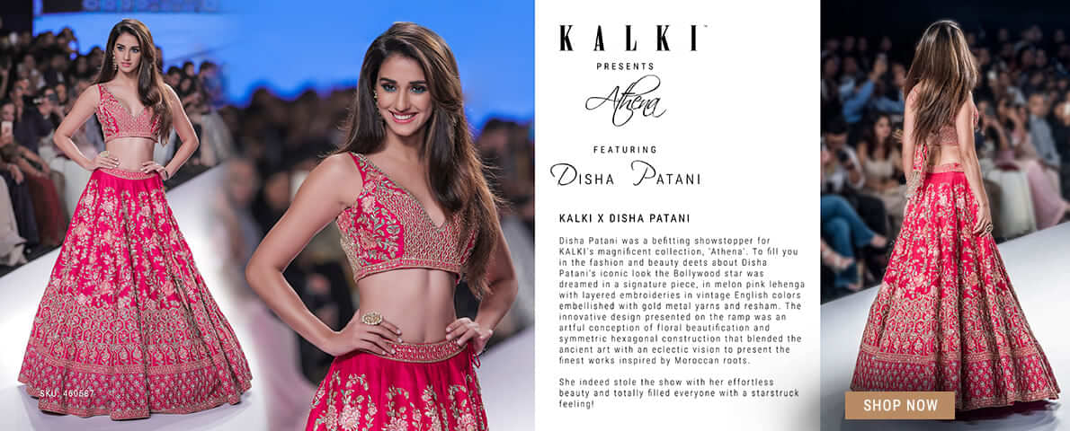 The KALKI Athena show at the Bombay Times Fashion Week saw, Bollywood big league and the super gorgeous, Disha Patani walking the ramp as the showstopper for their new collection. The Bollywood star, Disha Patani was dreamed in a signature piece, in melon pink lehenga with layered embroideries in vintage English colors embellished with gold metal threads, and resham. The innovative design presented on the ramp was a artful conception of floral beautification and symmetric hexagonal construction that blended the ancient art with an eclectic vision to present the finest works inspired from Moroccan roots. World stood still as she made a glorious walk on the ramp. Take a look at the video!