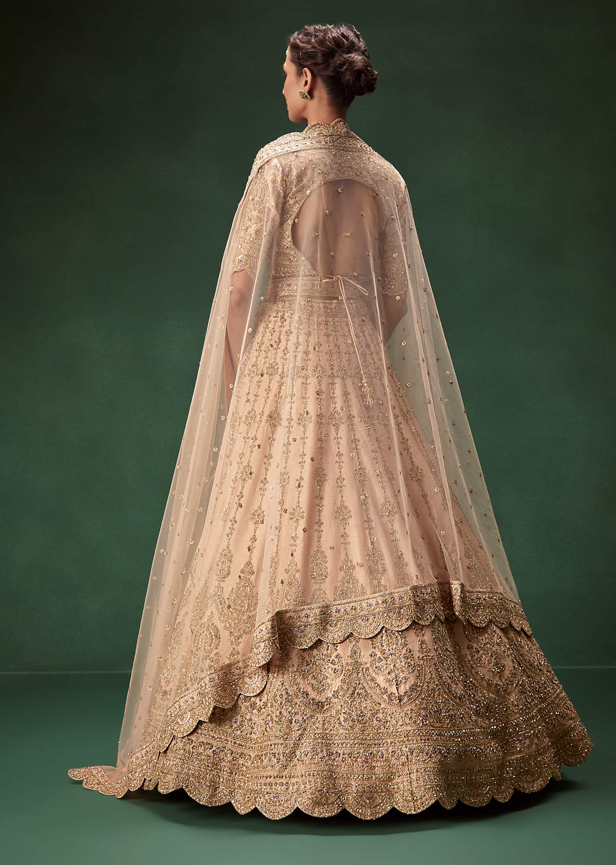 Peach Bridal Lehenga With Regal Embroidery And Single Dupatta Drape
