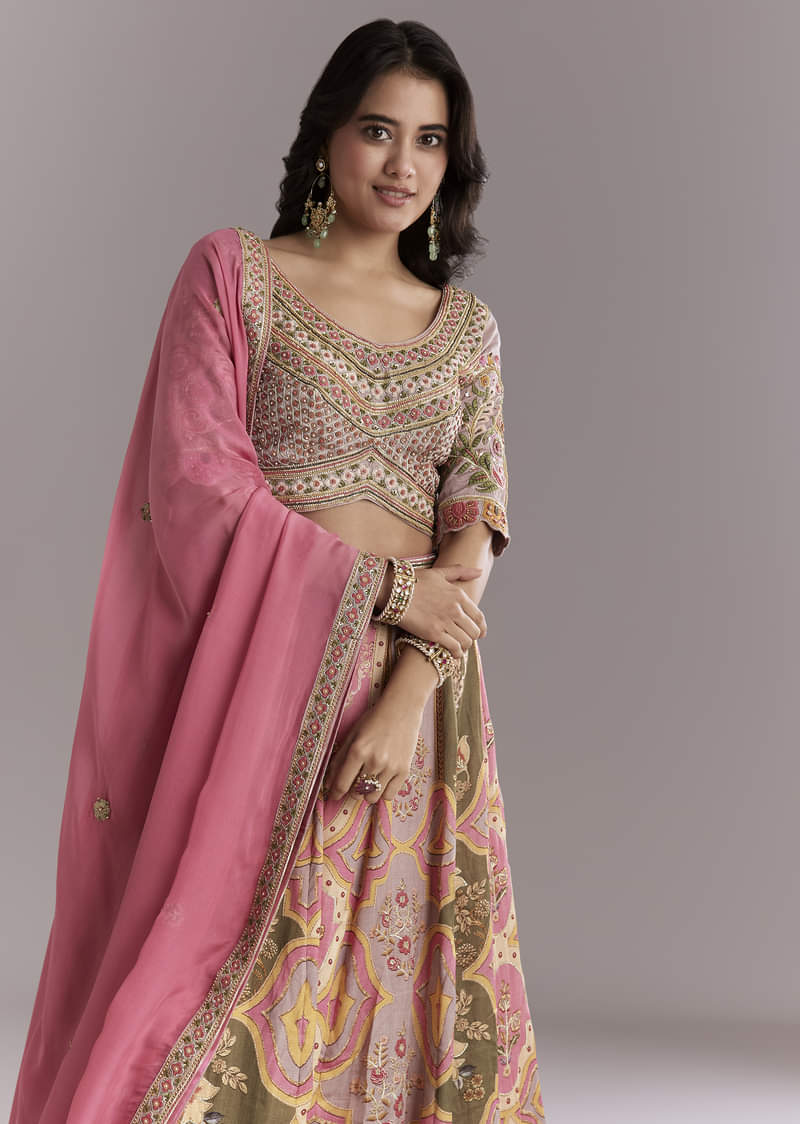 Pink Crepe Printed Bridesmaid Lehenga With Gotta Work