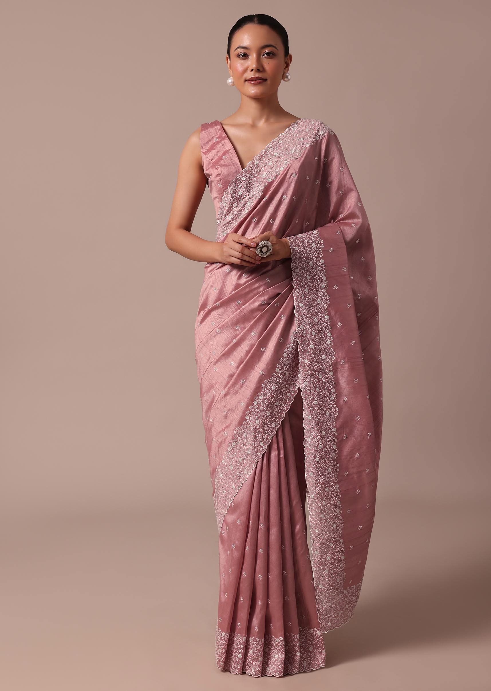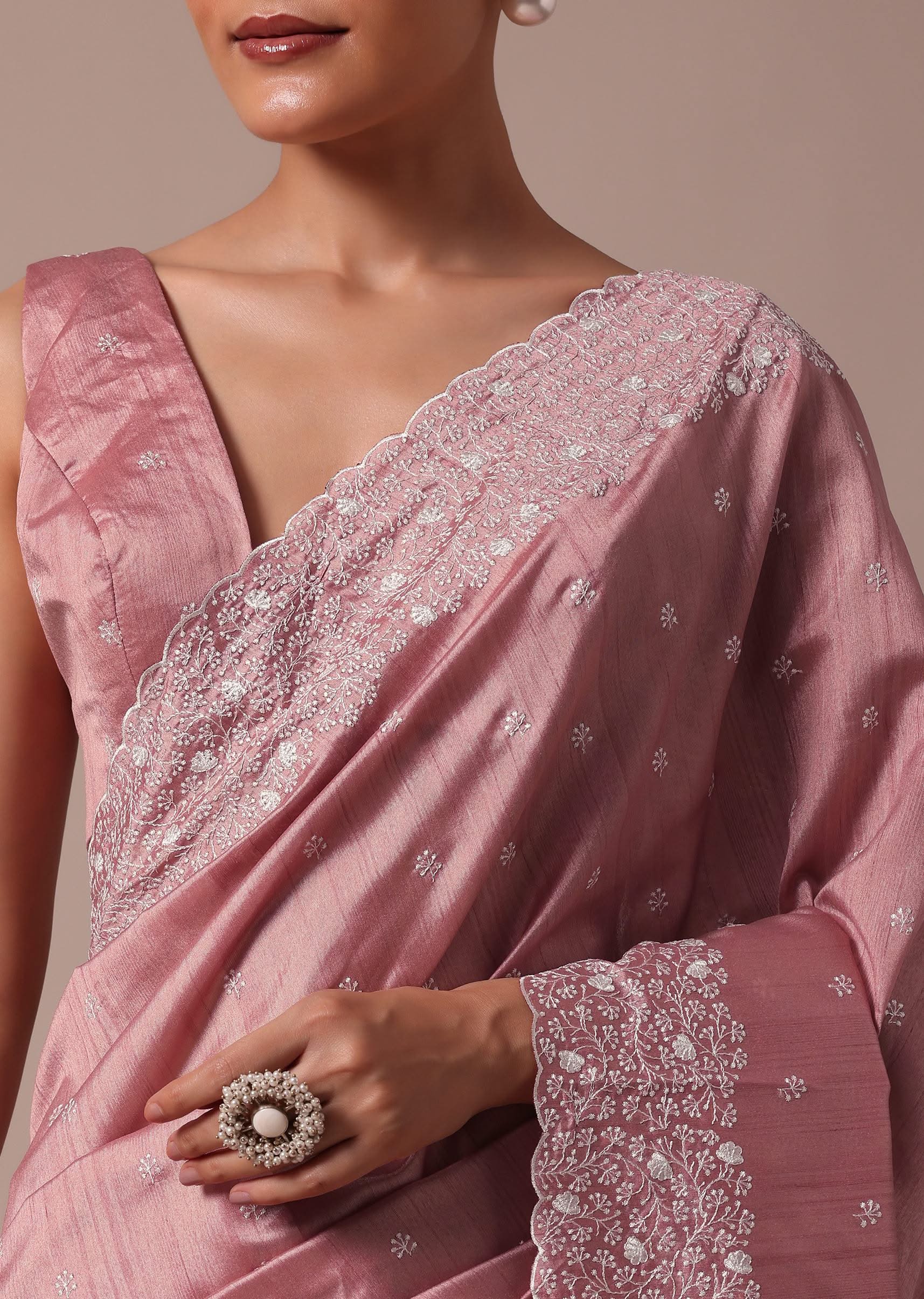 Admire the enticement of this pink saree adorned with resham work around the border. The saree is made from tussar silk. This saree comes with an unstitched blouse. Dress up this outfit for the reception and wedding ceremony. Awarded as the Most Trusted Brand, we're delivering styles you love, just as promised.