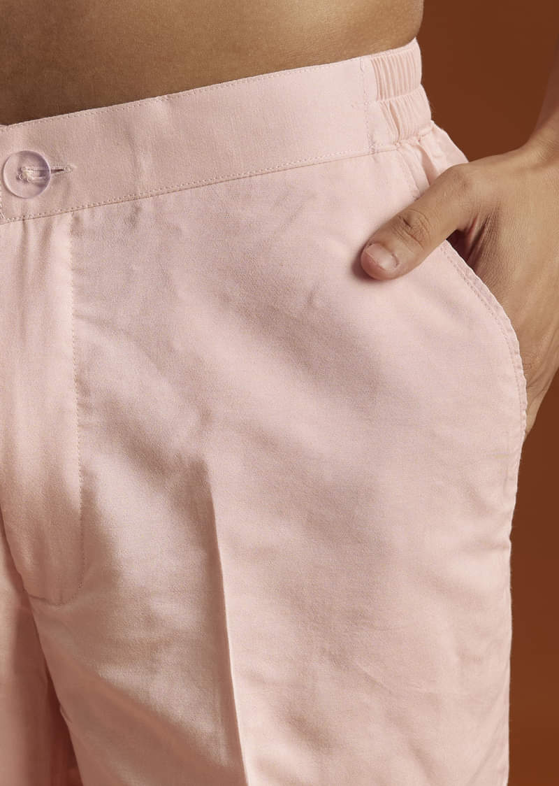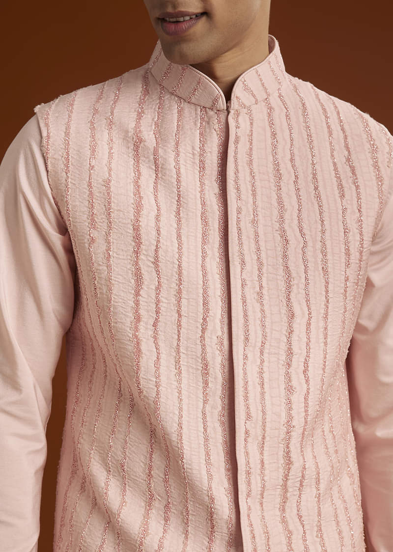 Powder Pink Kurta Jacket Set For Men With Cutdana Embroidery