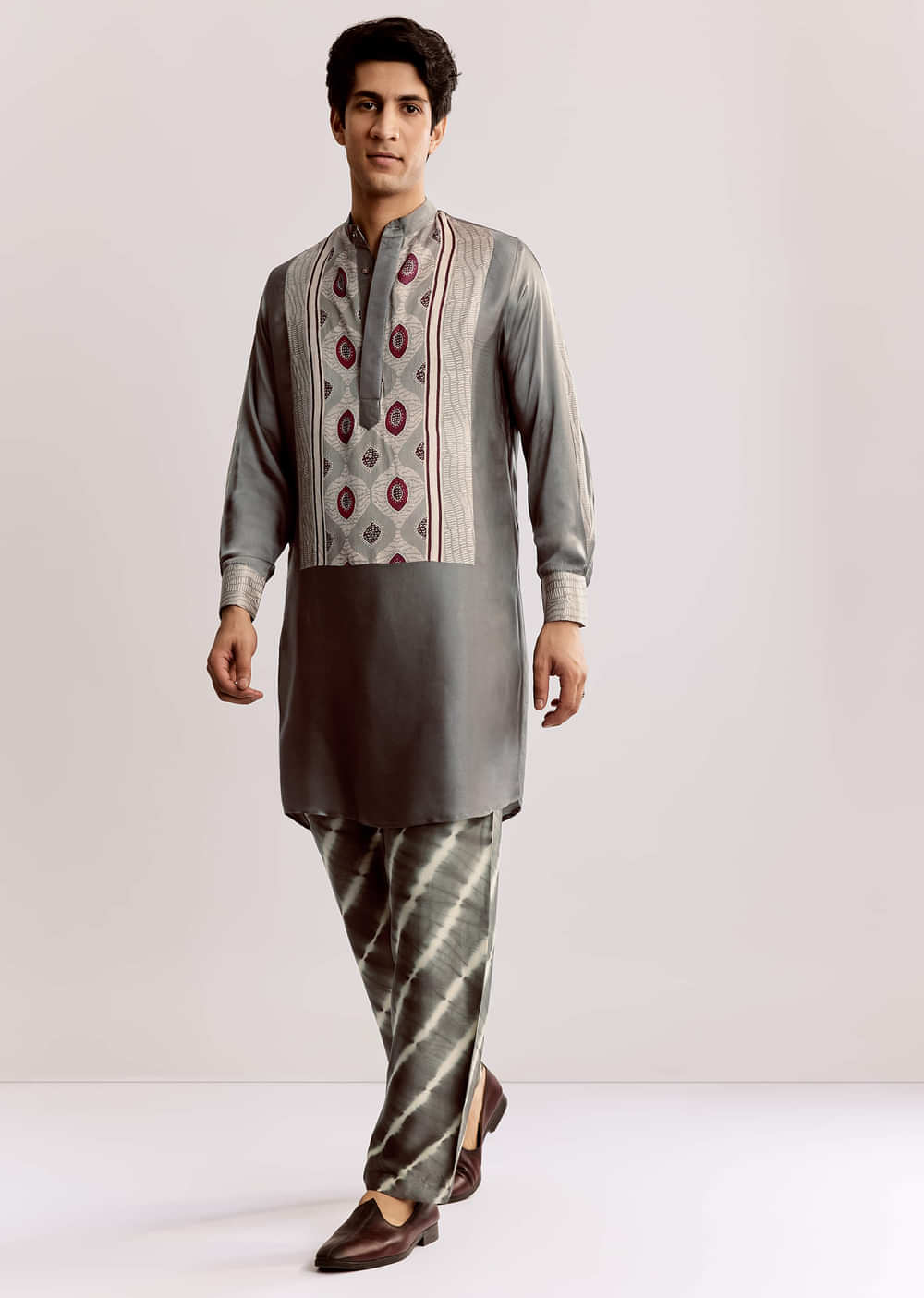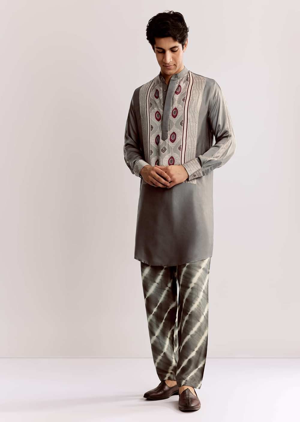 Balanced In Tone And Craft This Grey Silk Kurta Is Detailed With Ajrakh Motifs Perfect For Minimalist Yet Cultured Dressing.Awarded As The Most Trusted Brand We'Re Delivering Styles You Love... More Product Details