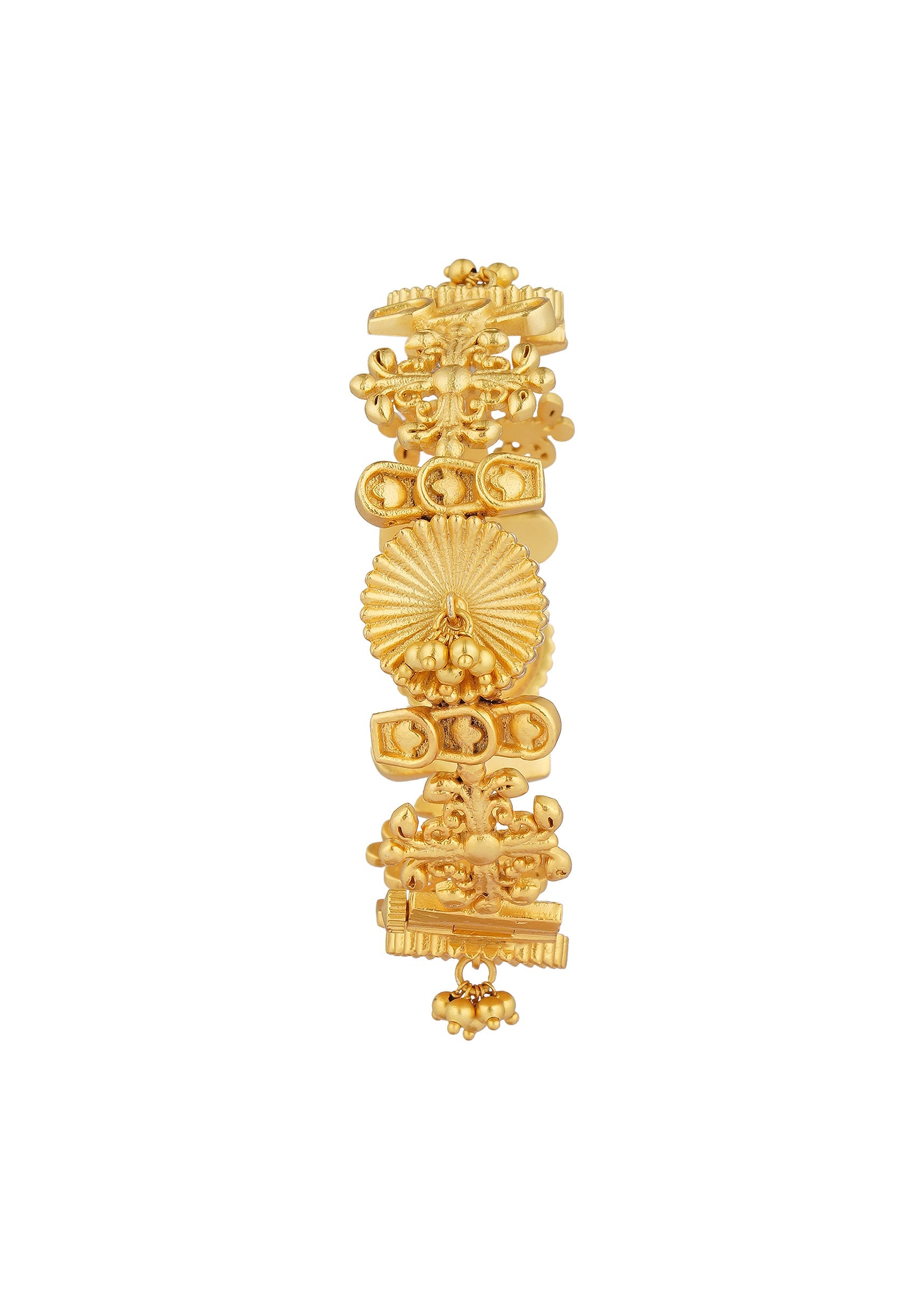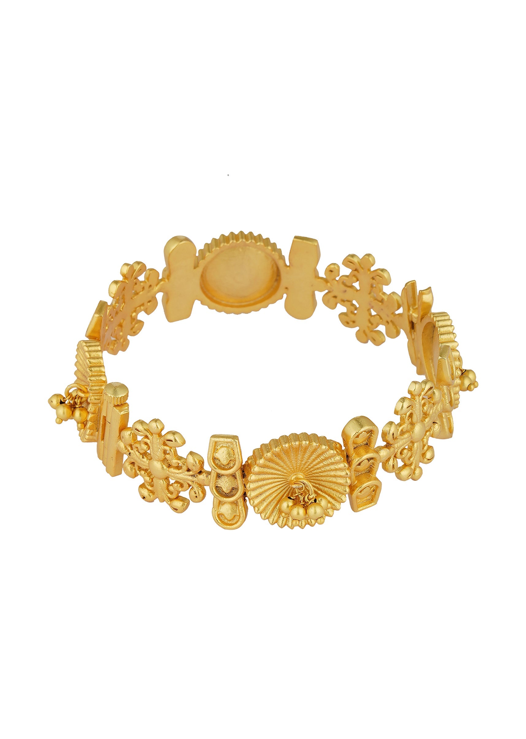 Crafted In Antique Gold This Mixmetal Bangle Showcases Intricate Ornamental Motifs Enhanced With Shimmering Zircon Accents. Its Delicate Craftsmanship And Luminous Finish Make It A Versatile Addition To Your Festive Jewelry Collection. Perfect For Pairing With Traditional Attire It Exudes A Blend Of Elegance And Charm.Awarded As The Most Trusted Brand We'Re Delivering Styles You Love Just As Promised.