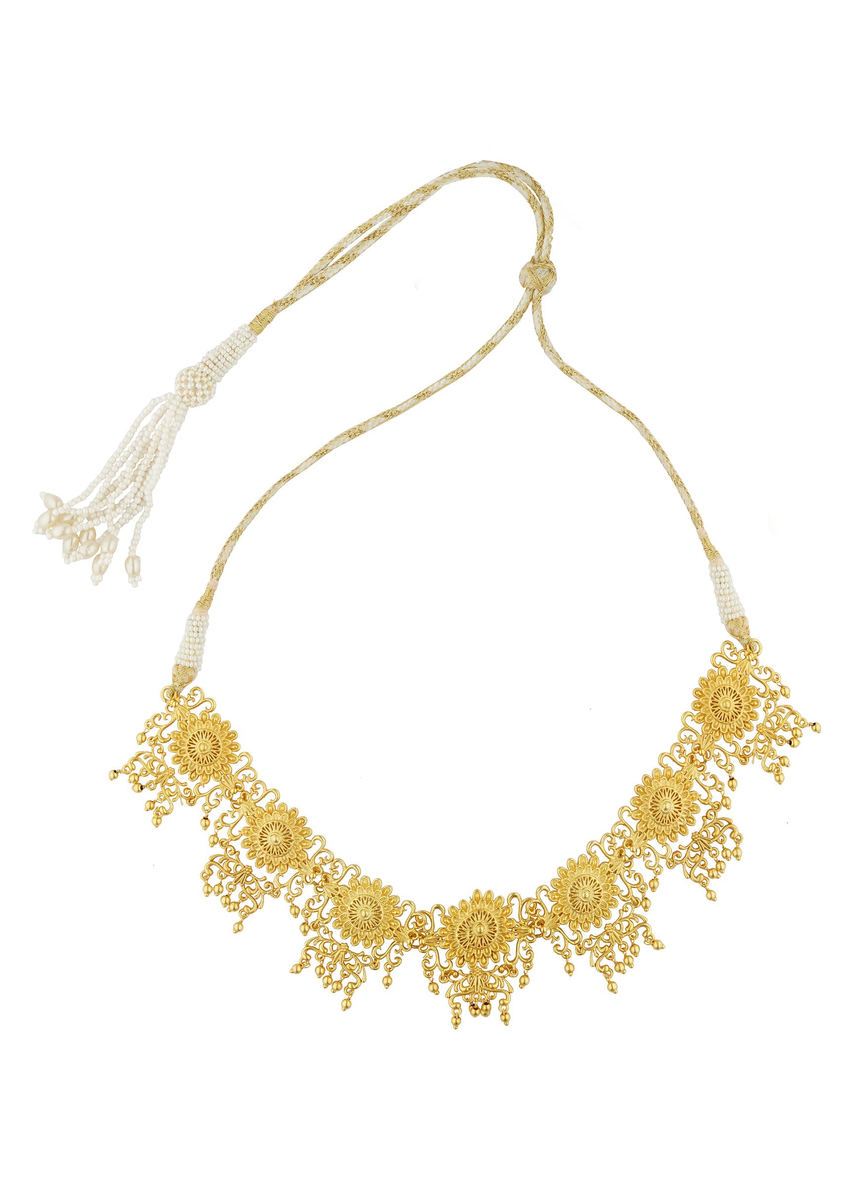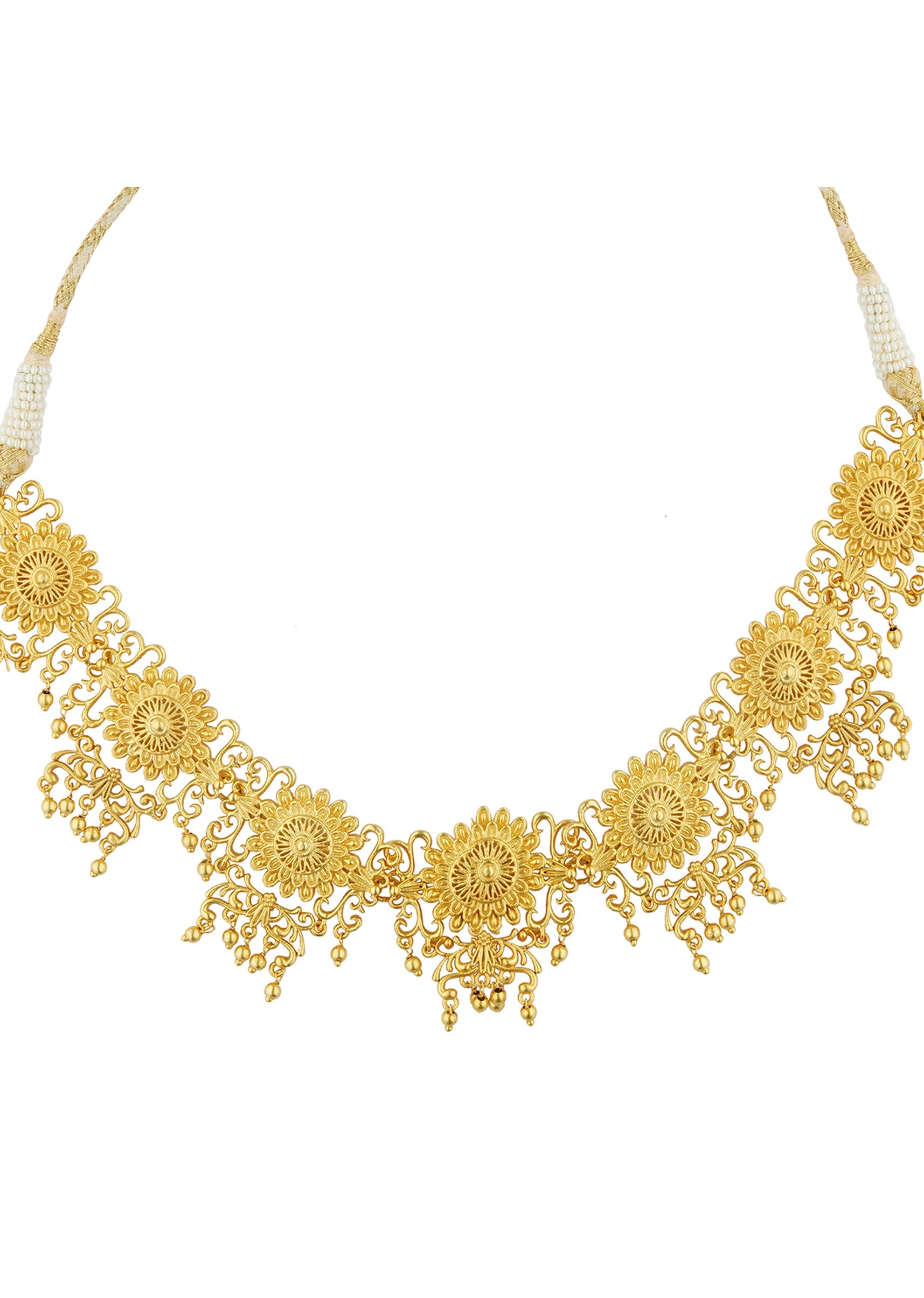 This Antique Gold Choker Necklace Showcases Exquisite Craftsmanship With Its Intricate Floralinspired Design Crafted In Mix Metal And Adorned With Shimmering Zircon Accents. Perfect For Festive Occasions And Celebrations It Effortlessly Elevates Traditional Outfits With Its Timeless Elegance. Lightweight And Versatile This Piece Adds A Graceful Touch To Your Ethnic Wardrobe.Awarded As The Most Trusted Brand We'Re Delivering Styles You Love Just As Promised.