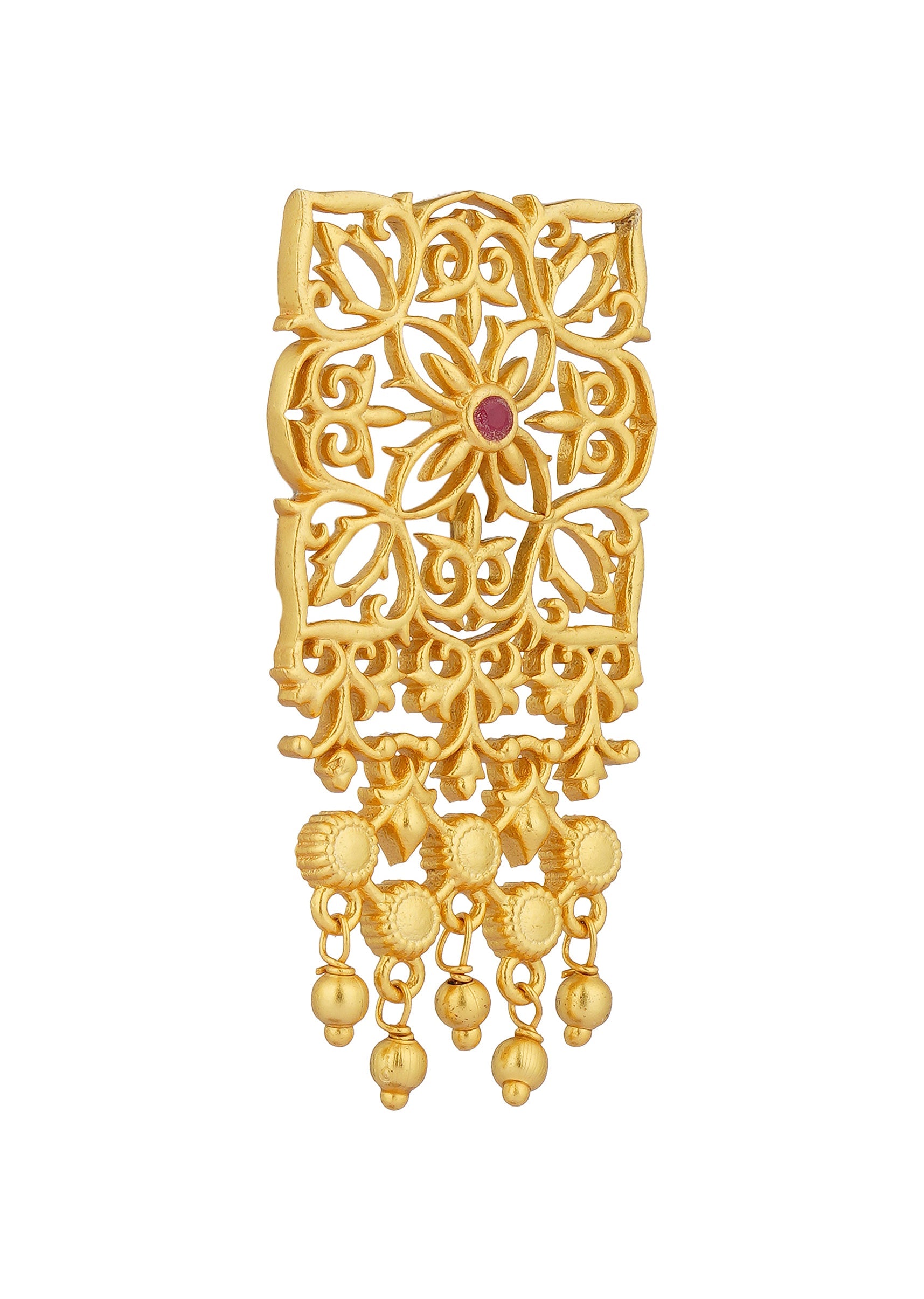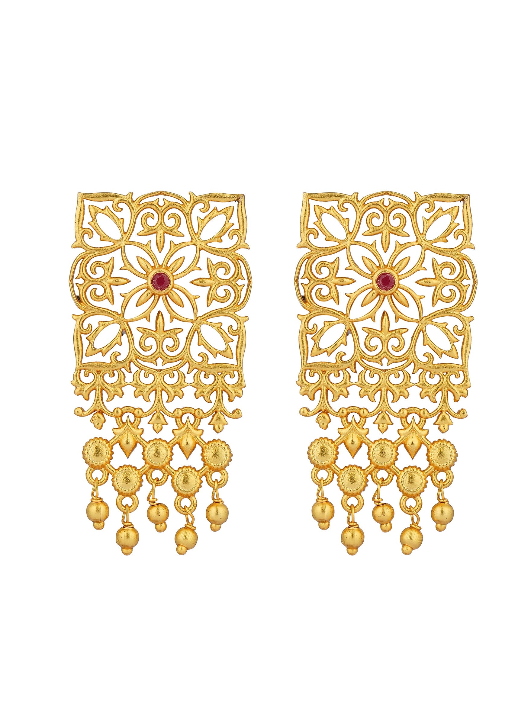 The Eternal Enigma Stud Earrings Are Crafted In Antique Gold Showcasing An Intricate Filigree Design Adorned With Sparkling Zircon Stones. These Earrings Feature A Cascading Fringe Of Delicate Metallic Beads... More Product Details