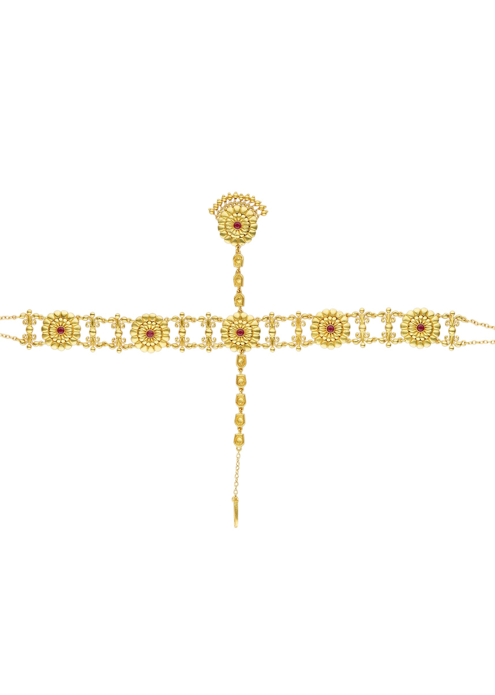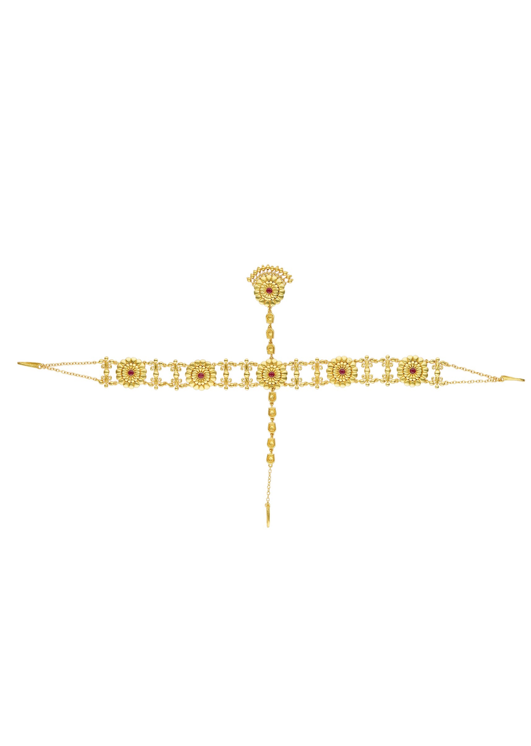 This Antique Gold Maatha Patti Features Intricate Floral Motifs Inspired By Marigold Patterns Linked Seamlessly With Zirconadorned Connectors. Crafted From Mix Metal Its Elegant Design Radiates A Traditional Charm Perfect For Ceremonial Occasions. The Lightweight Yet Durable Structure Ensures Comfort And Enhances The Bridal Look With Timeless Elegance.Awarded As The Most Trusted Brand We'Re Delivering Styles You Love Just As Promised.