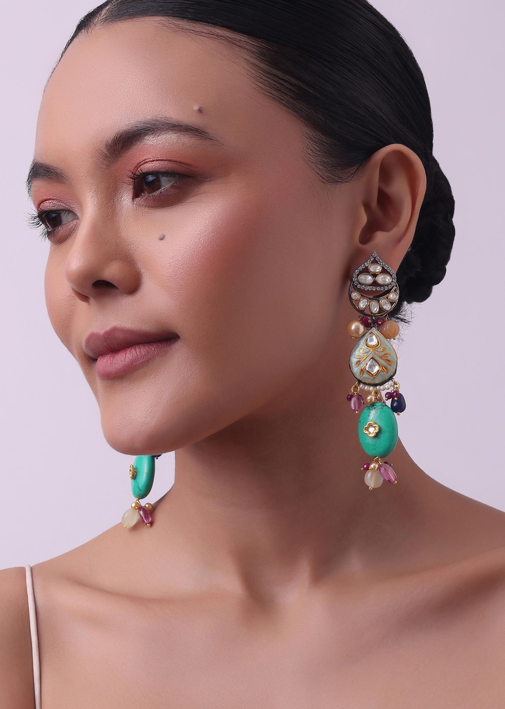 Step into a world of sophistication with our gold finish choker set in mix metal a celebration of refined craftsmanship. The choker is elegantly adorned with intricate aqua-blue kundan stones... More Product Details