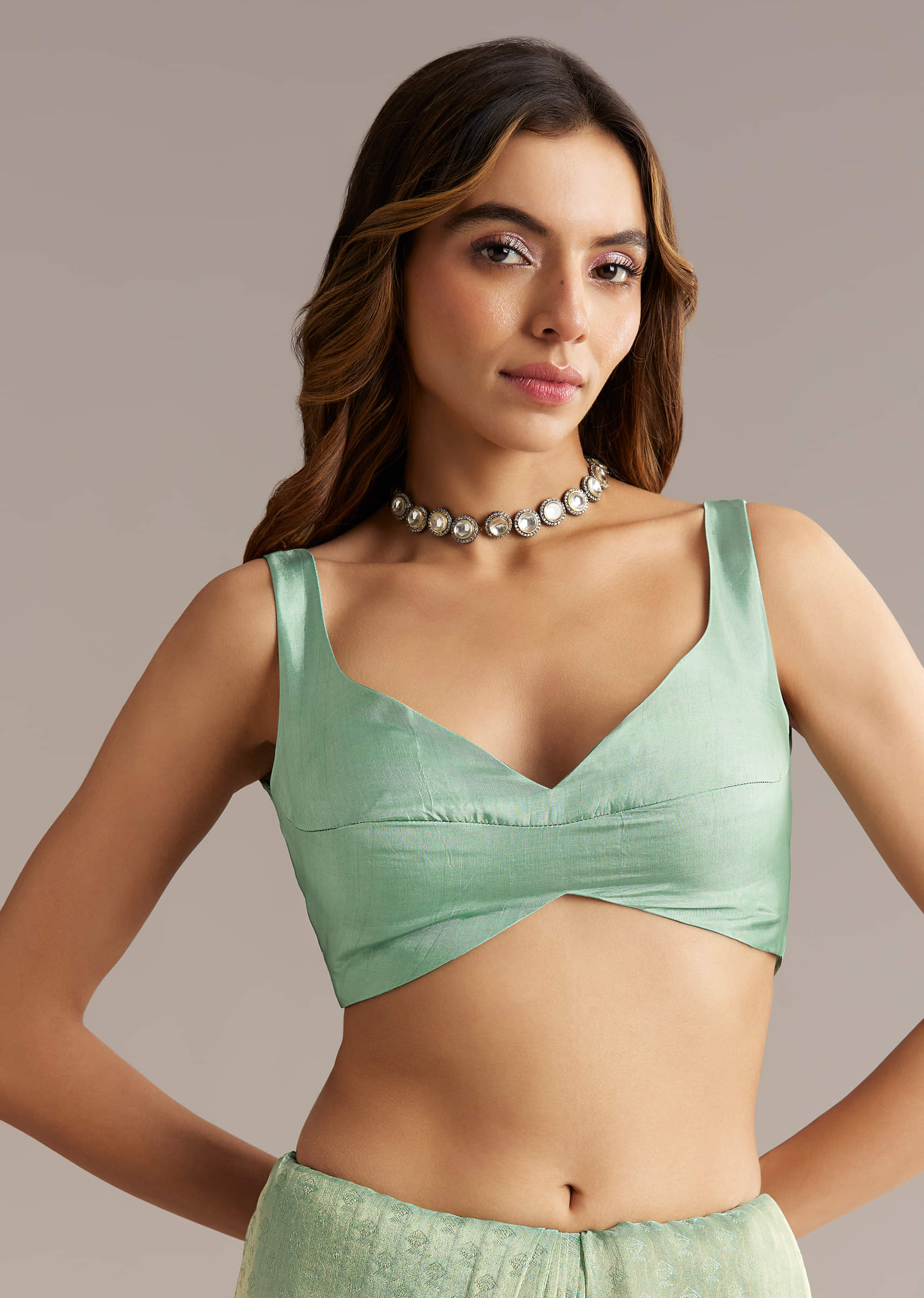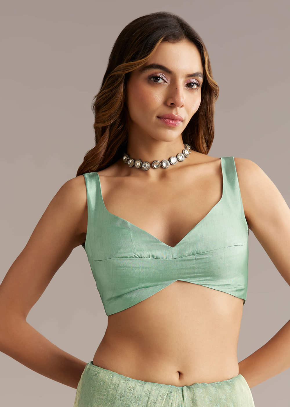 Bright and lively, this aqua blue jacquard saree feels festive yet refined. The embroidered border shines with mirror work, cutdana, sequins, and beads for layered texture. It is a striking... More Product Details
