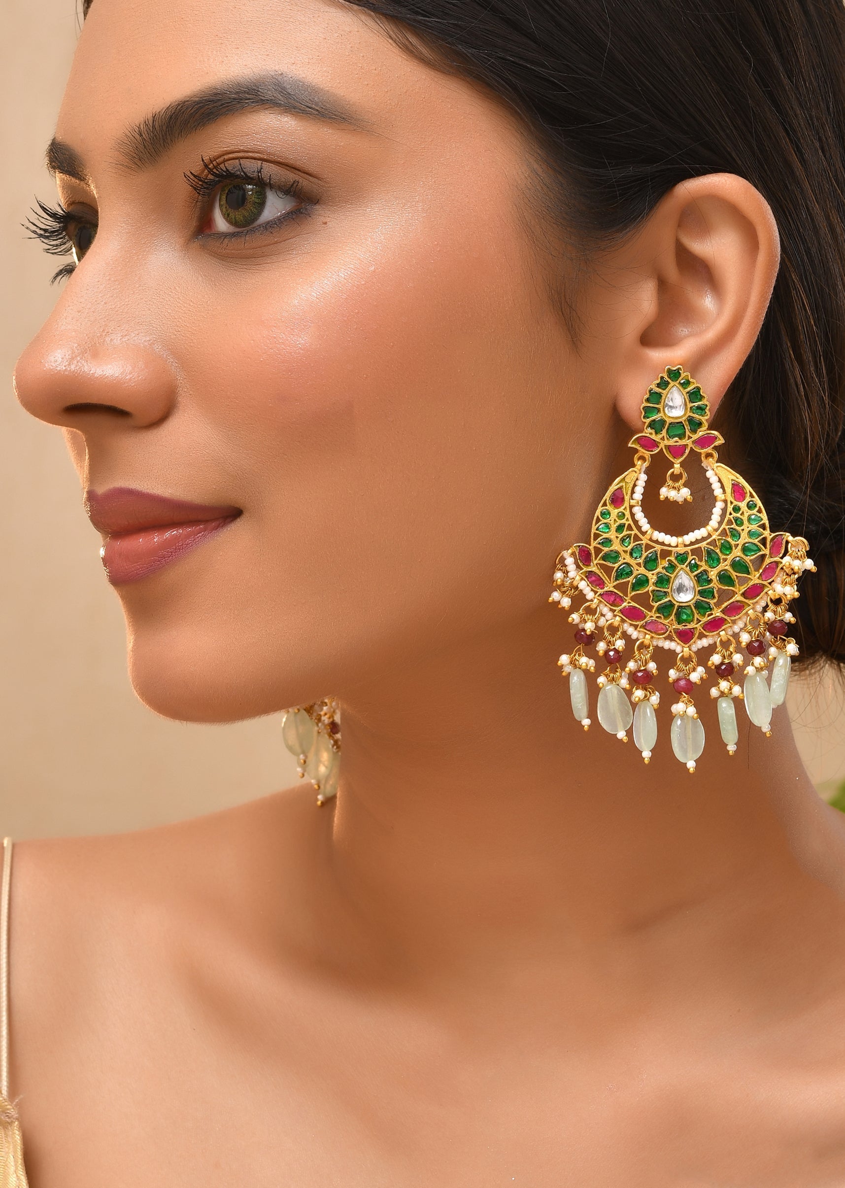 These aqua blue multi colored earrings feature intricate pachi kundan work for a vibrant and festive appeal. Perfect for weddings, mehendi, or festive celebrations, they add charm and elegance to... More Product Details