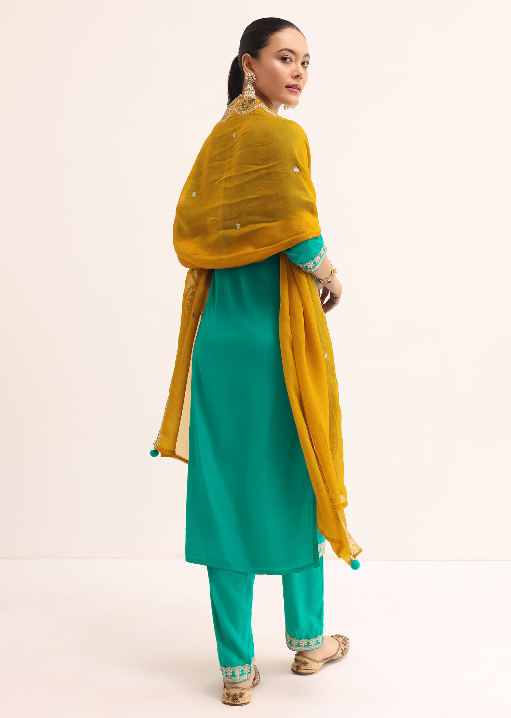 Aqua Green Cotton Silk Kurta Set With Dupatta