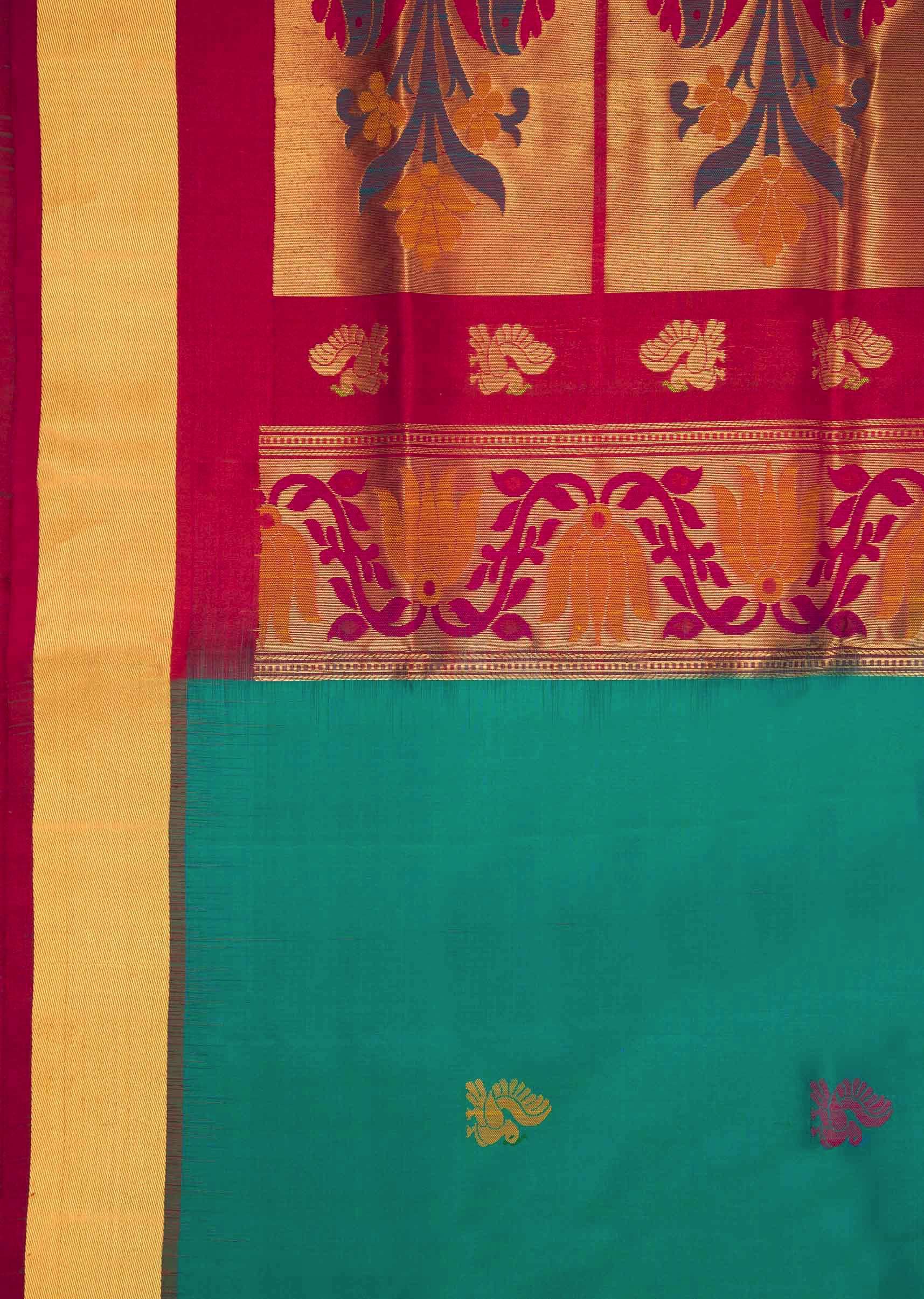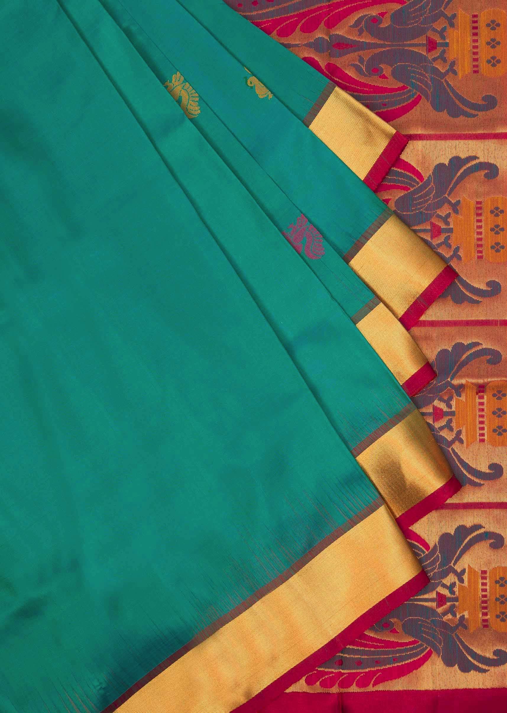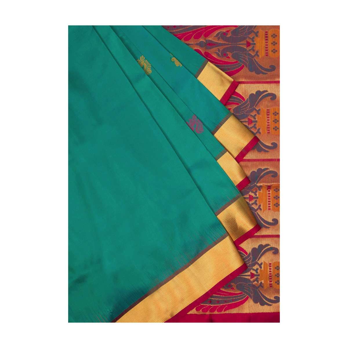 Atoll Blue And Fuschia Red Saree In Silk Online - Kalki Fashion