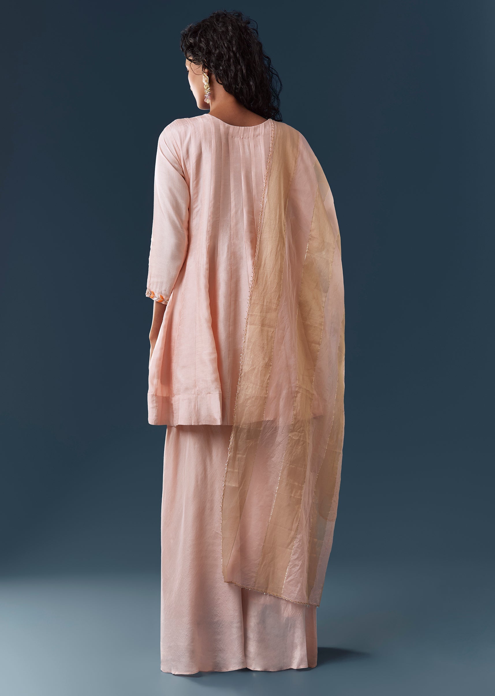 Baby Pink Silk Palazzo Set With Dupatta