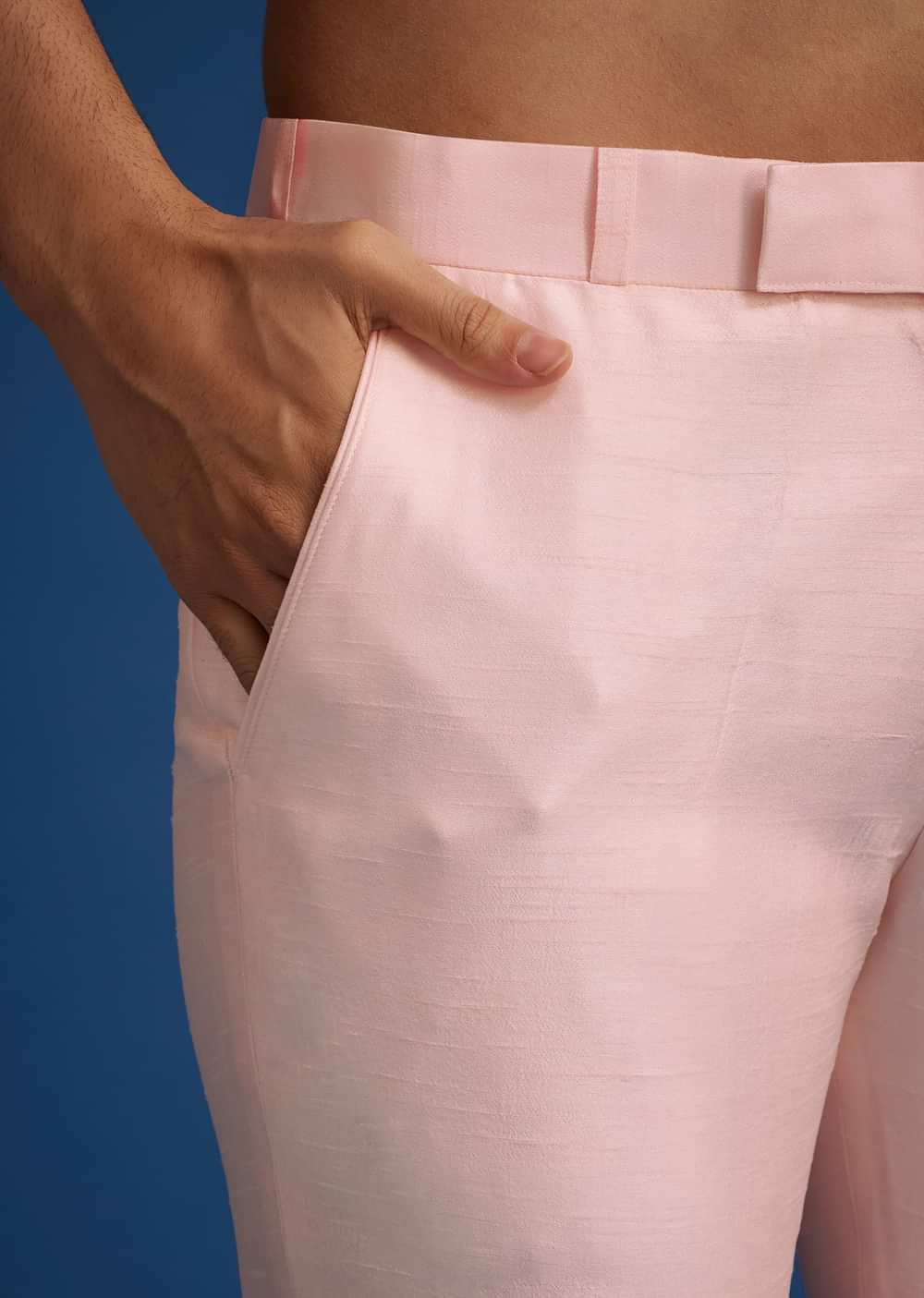 Embrace refined elegance with this baby pink kurta jacket set, exquisitely crafted in luxurious tussar fabric. The embroidered bandi features delicate mirror work, blending traditional craftsmanship with a modern silhouette. The closed kurta, adorned with subtle embellishments, pairs seamlessly with tailored pants, making this ensemble perfect for weddings, festive gatherings, and grand celebrations.Awarded as the Most Trusted Brand, we're delivering styles you love, just as promised.