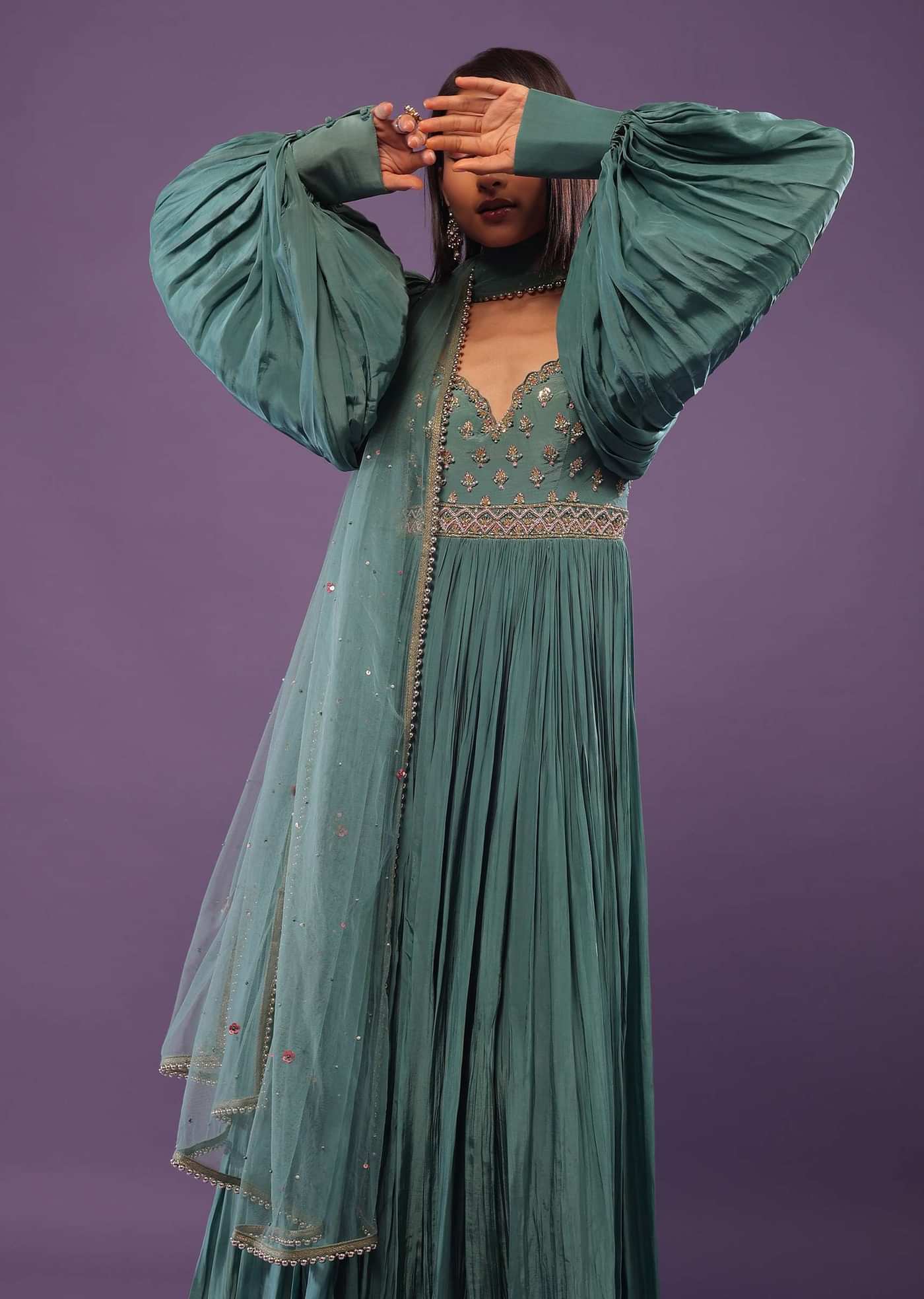 Jade Green Festive Anarkali Suit In Crepe