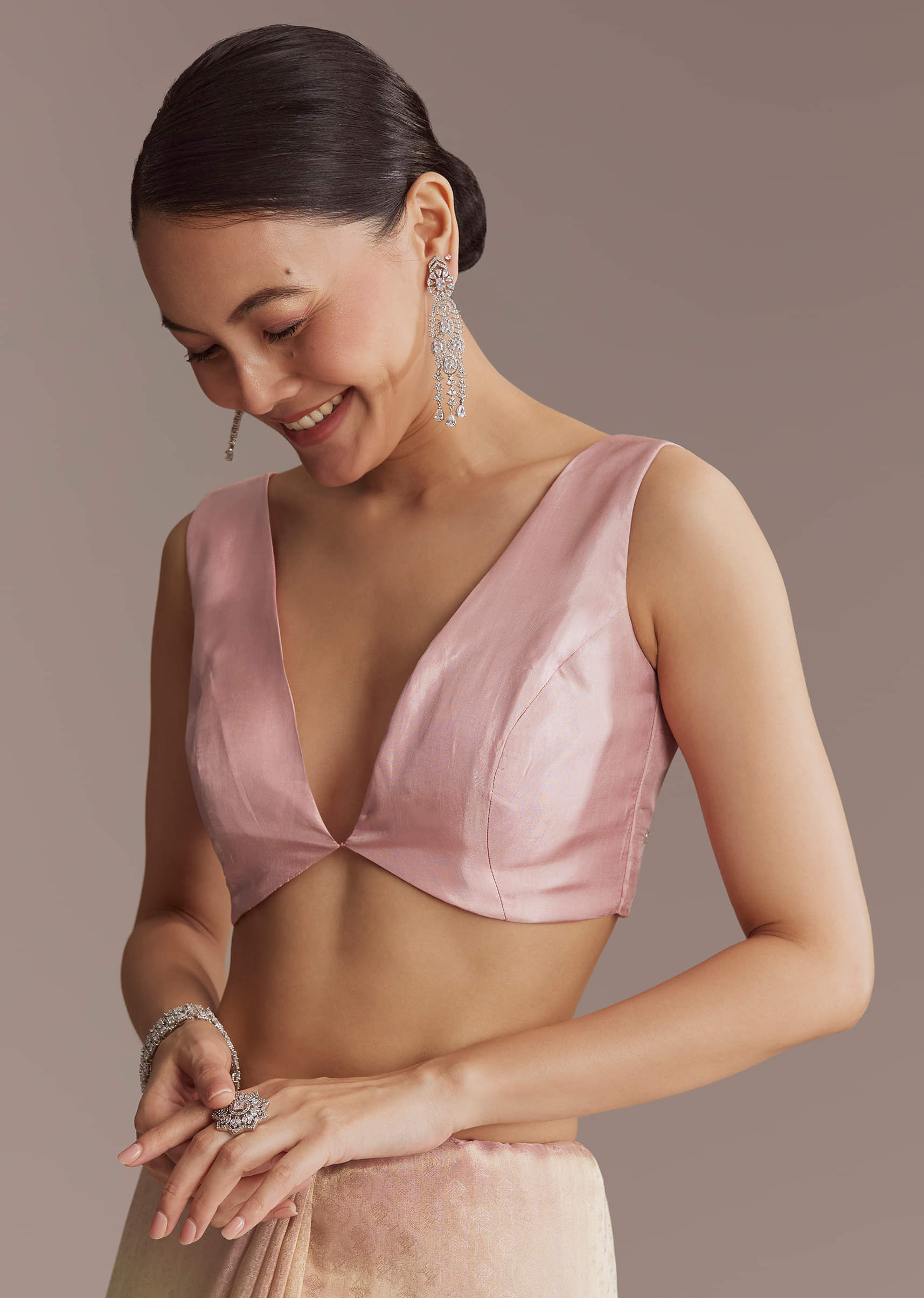 A soft two-tone look brings charm to this beige and pink ombre jacquard embroidered saree. The border and buttis are finished with cutdana, sequins, beads, and mirror details for layered... More Product Details