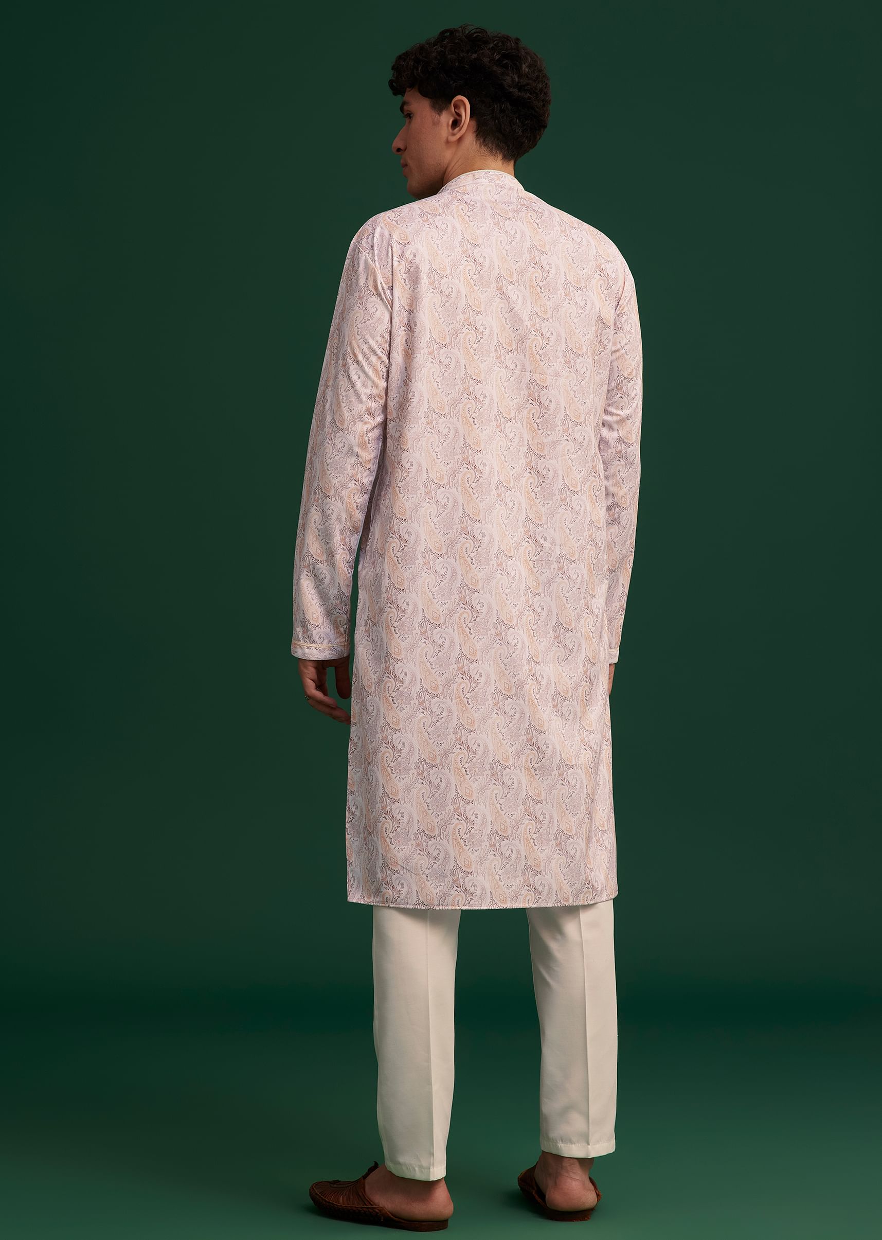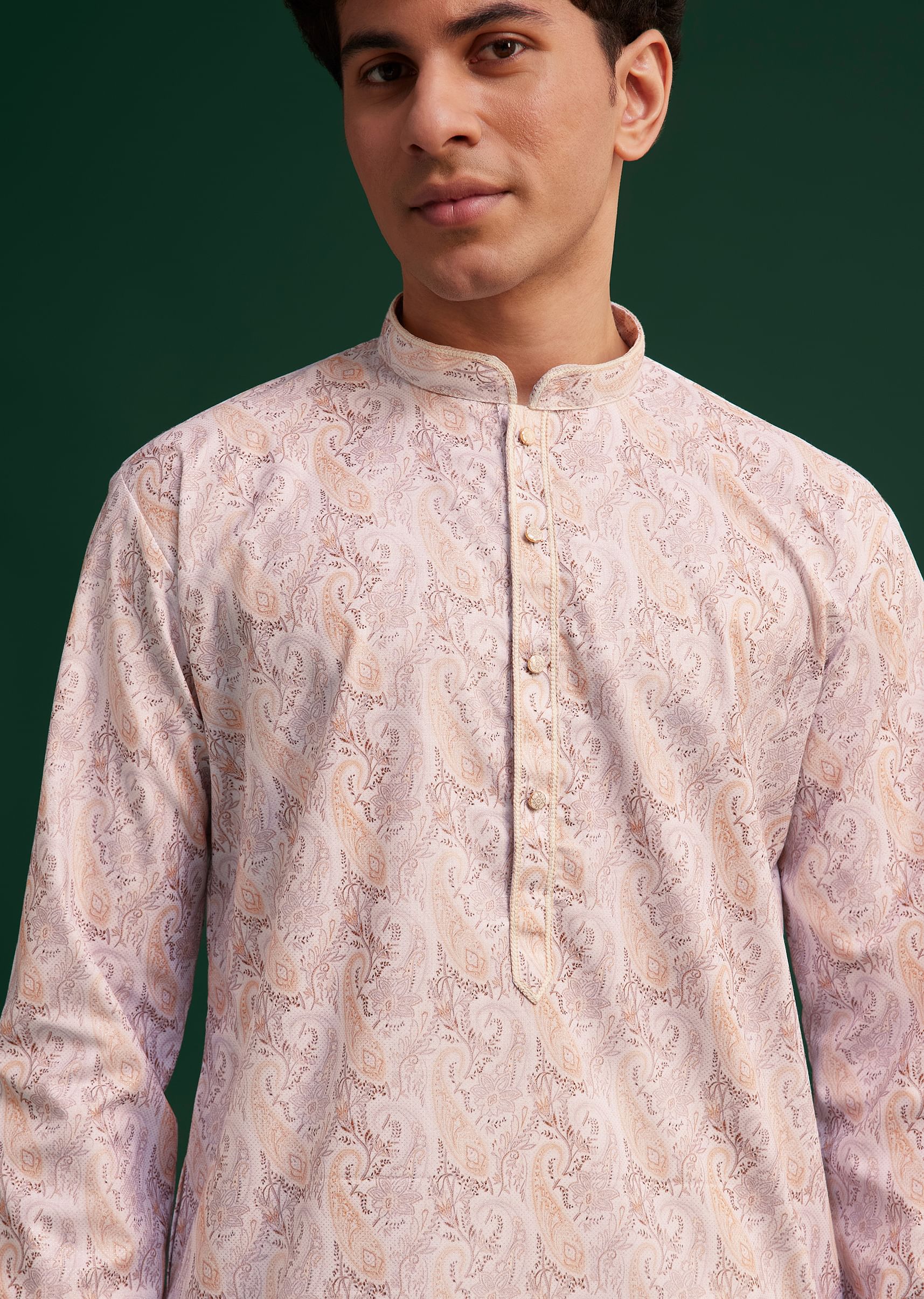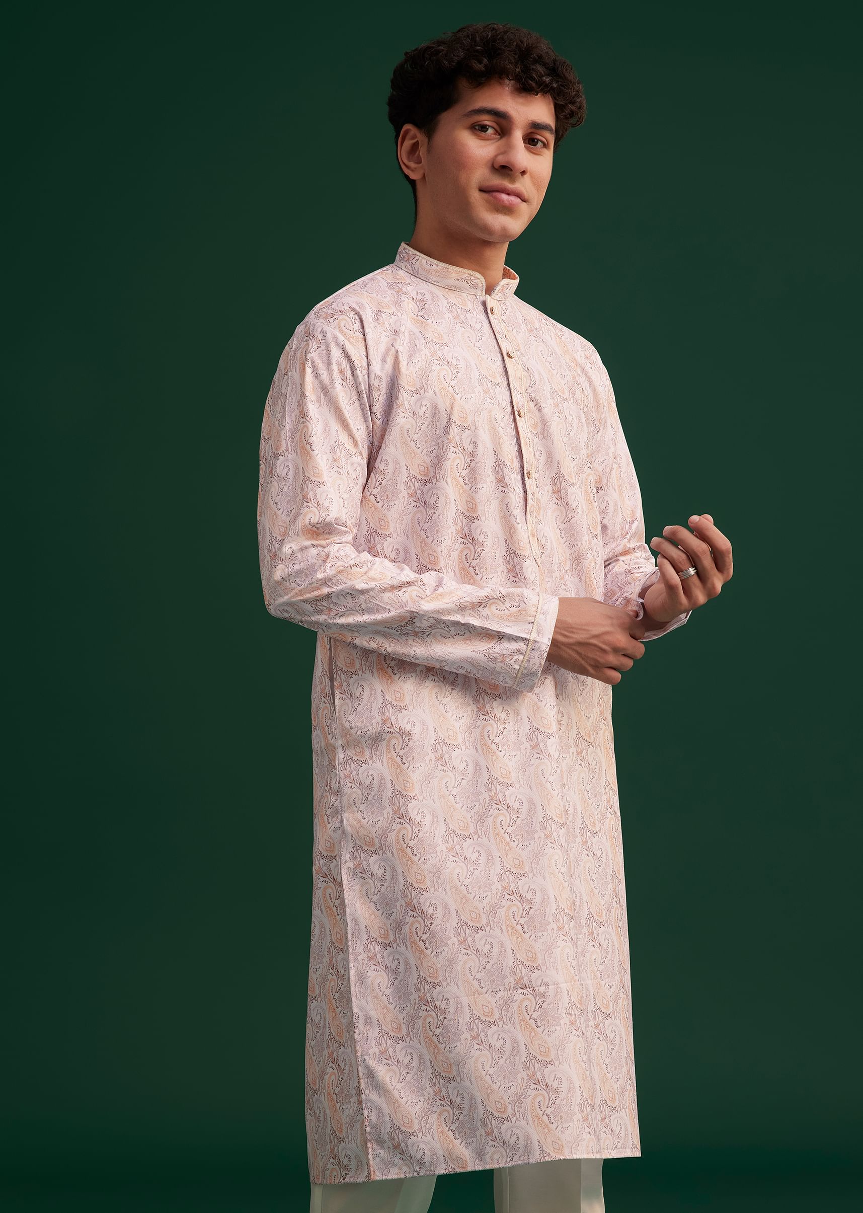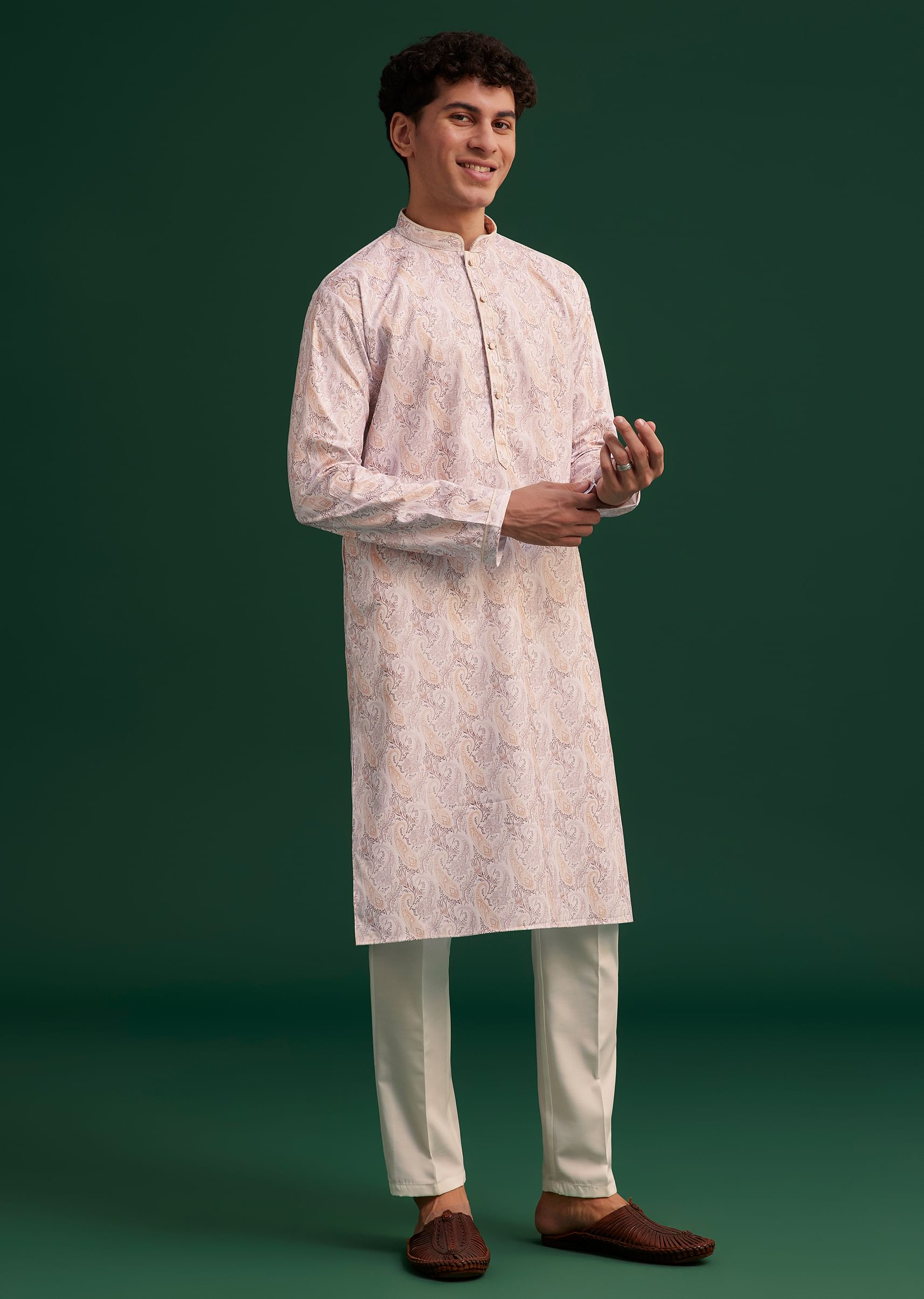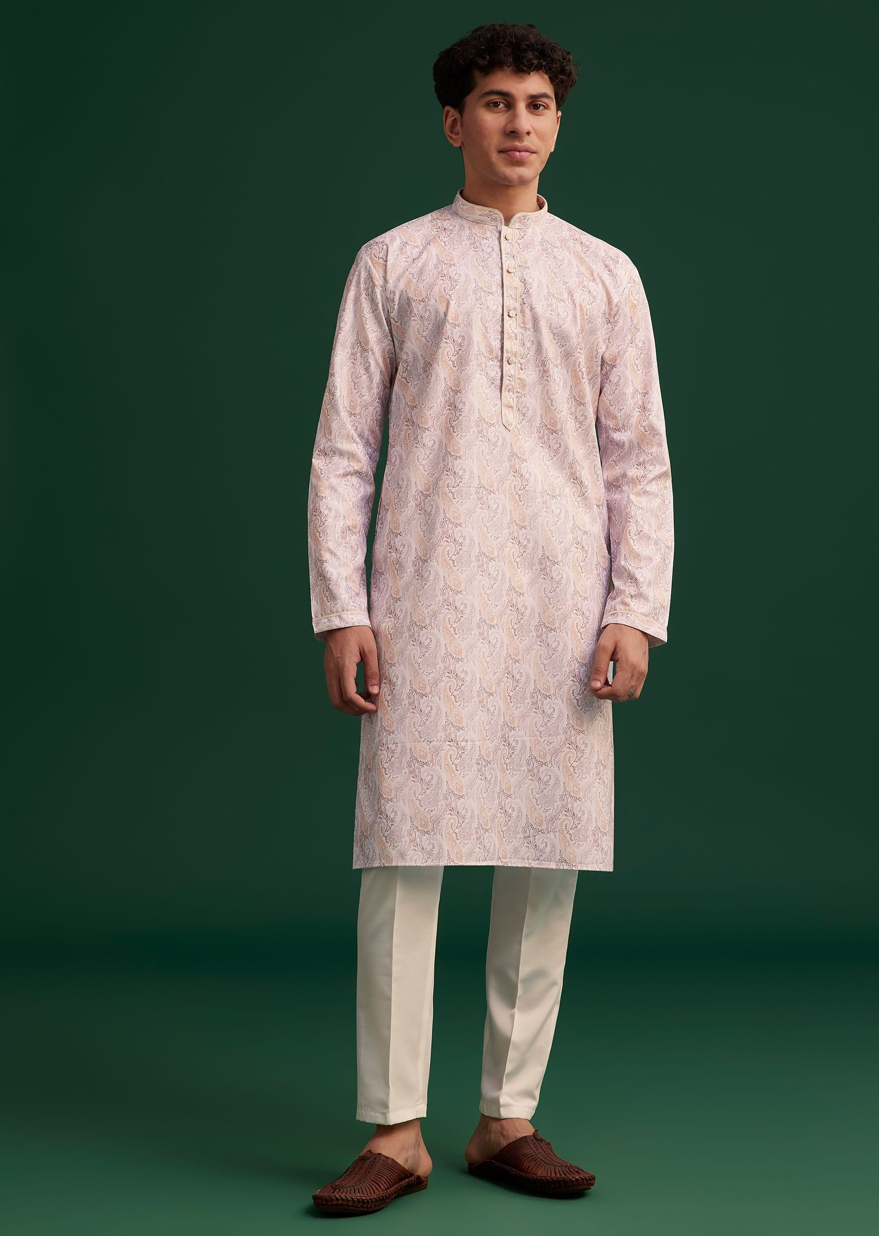 - Embrace Timeless Elegance With This Beige Cotton Kurta Set Adorned With A Classic Paisley Print That Exudes Sophistication.