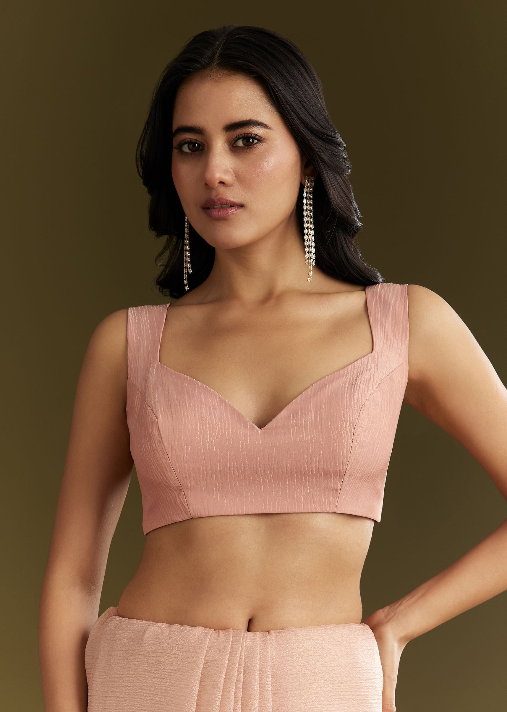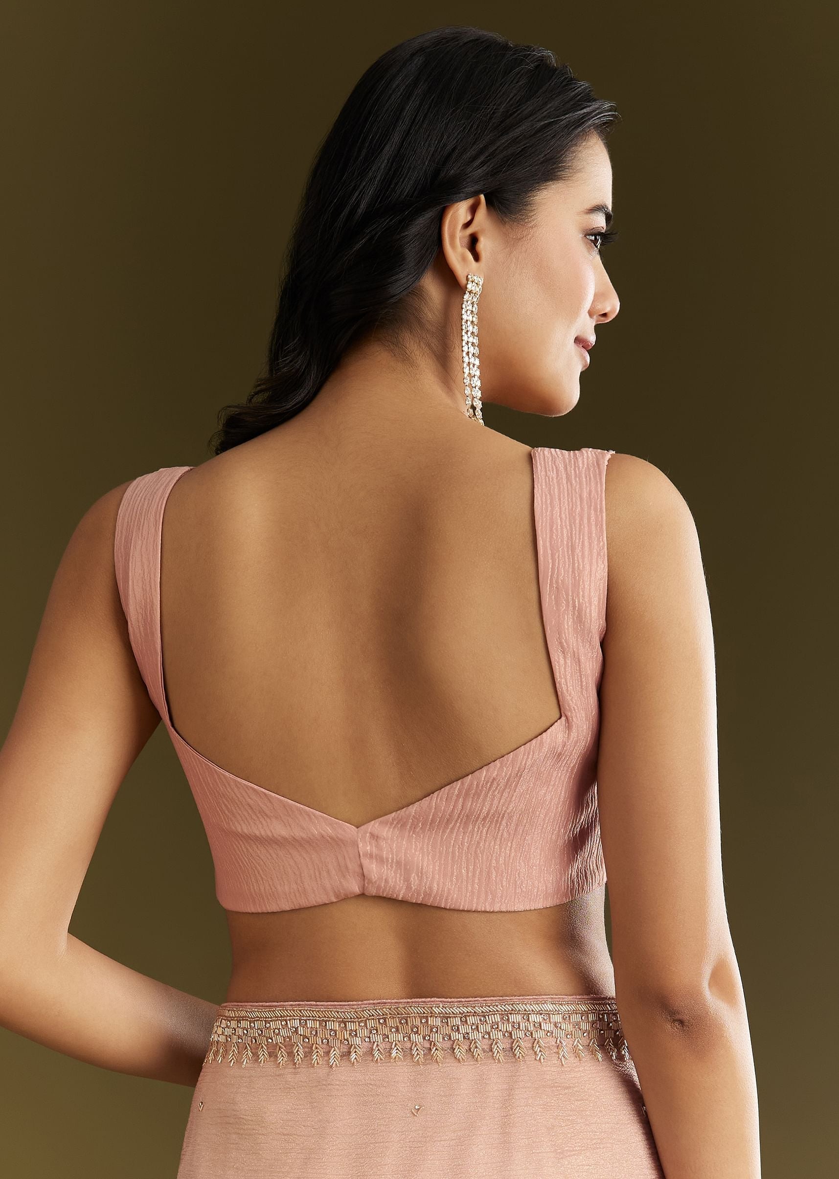 Like champagne mist on golden dunes, this glossy beige crushed tissue saree shimmers with stones and cutdana embroidery—crafted for celebrations touched with understated grandeur. Awarded as the Most Trusted Brand, we're delivering styles you love, just as promised.