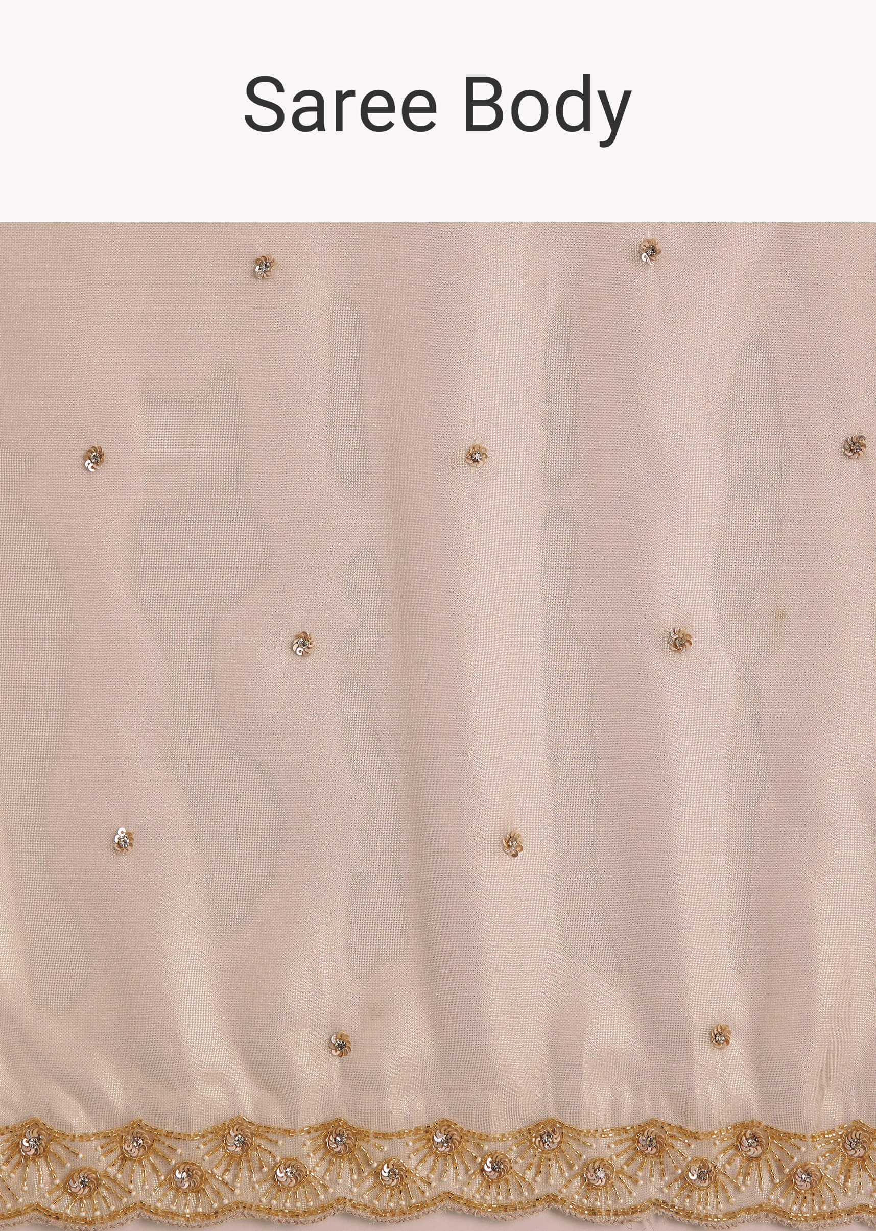 Beige Glass Tissue Saree With Cutdana And Beads Scallop Border