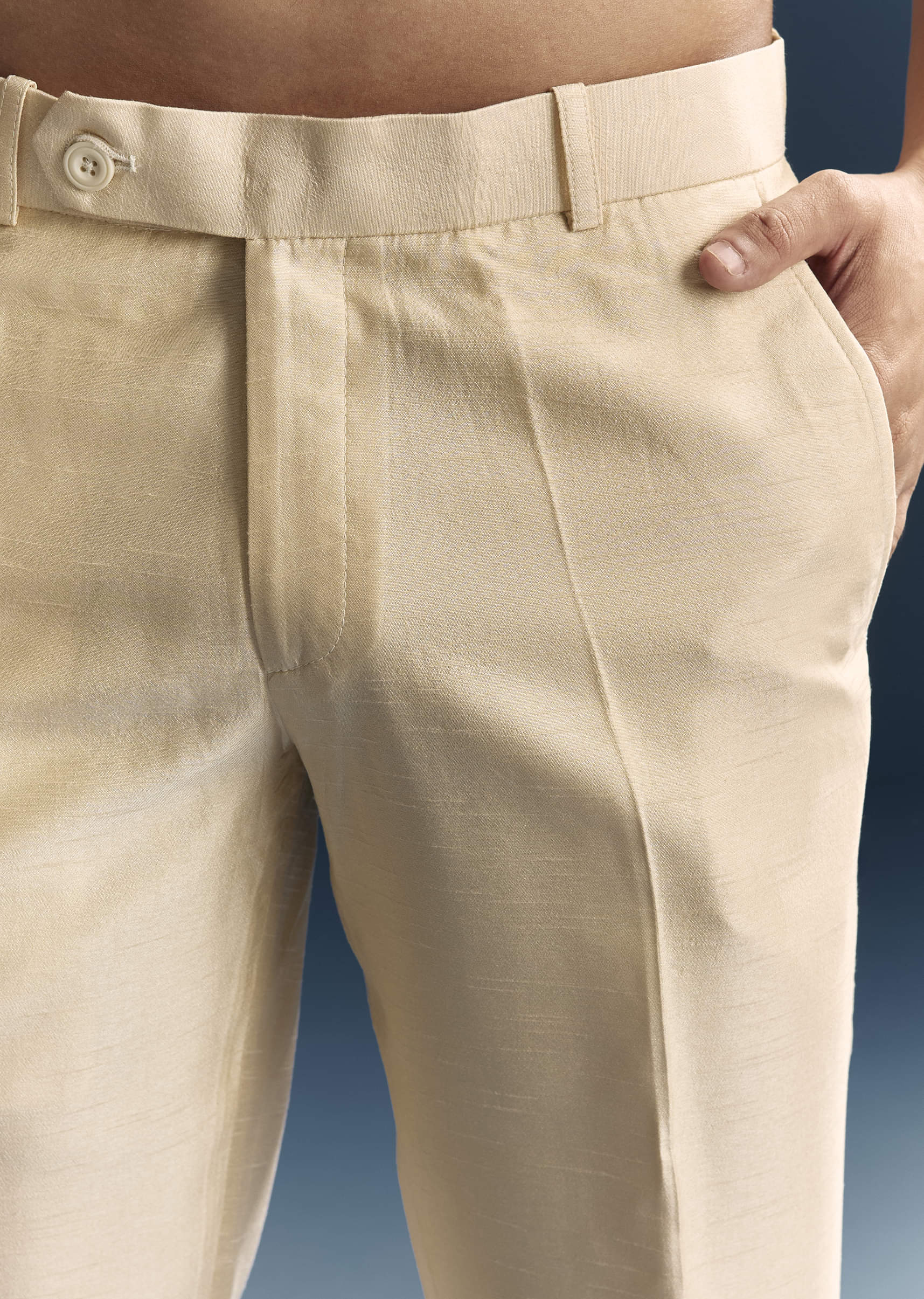 Beige Jacquard Kurta Jacket Set For Men With Resham And Moti Work
