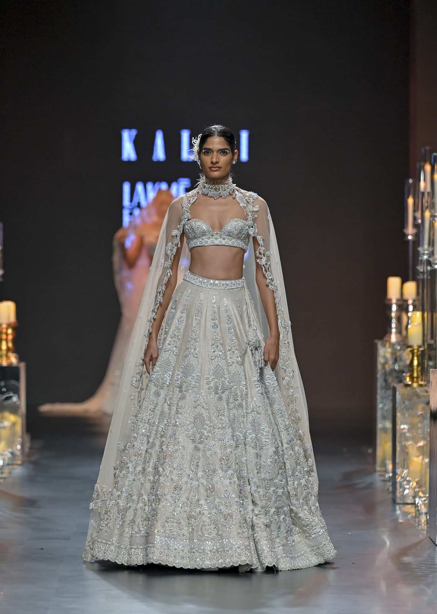 An instant head-turner, this beige lehenga set is a regal masterpiece.The set consists of a lehenga, a blouse, and two dupattas.A heritage-infused silhouette embellished with delicate jardozi work, pearls, cutdana,... More Product Details