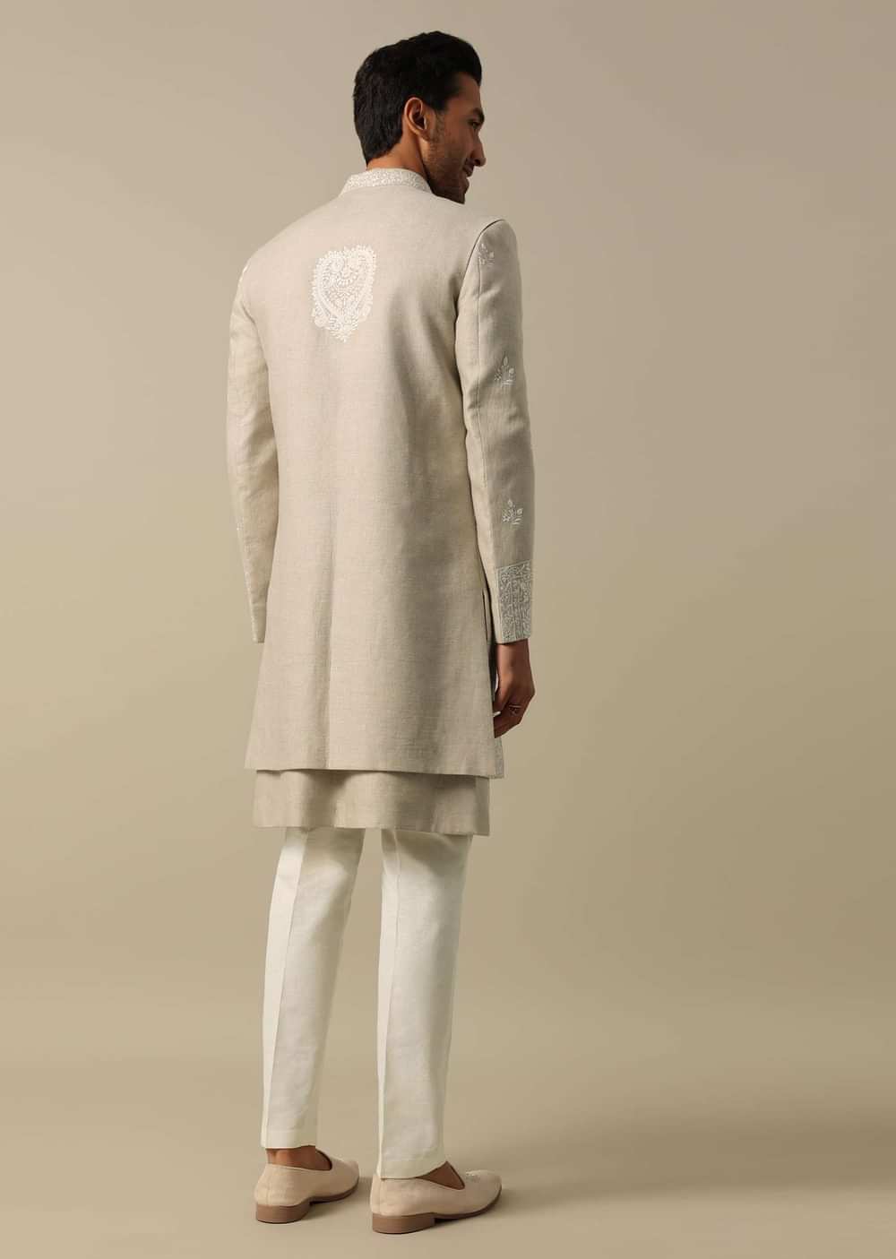 Beige Linen Indowestern Sherwani Set