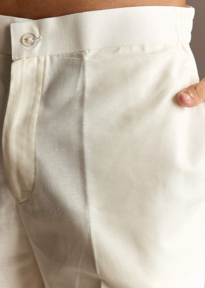 Pair with off-white churidars and metallic slip-ons to keep the tone serene yet polished.