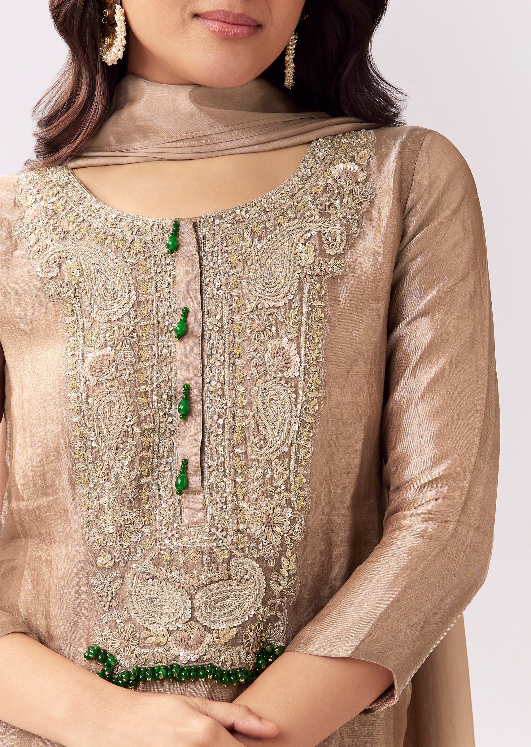 Beige Palazzo Suit With Zardozi Sequin Detailing