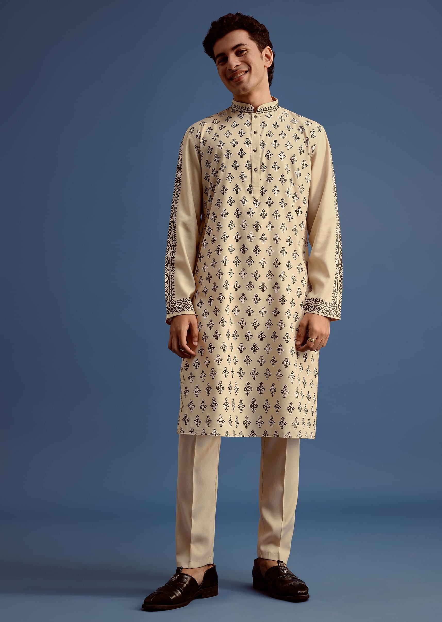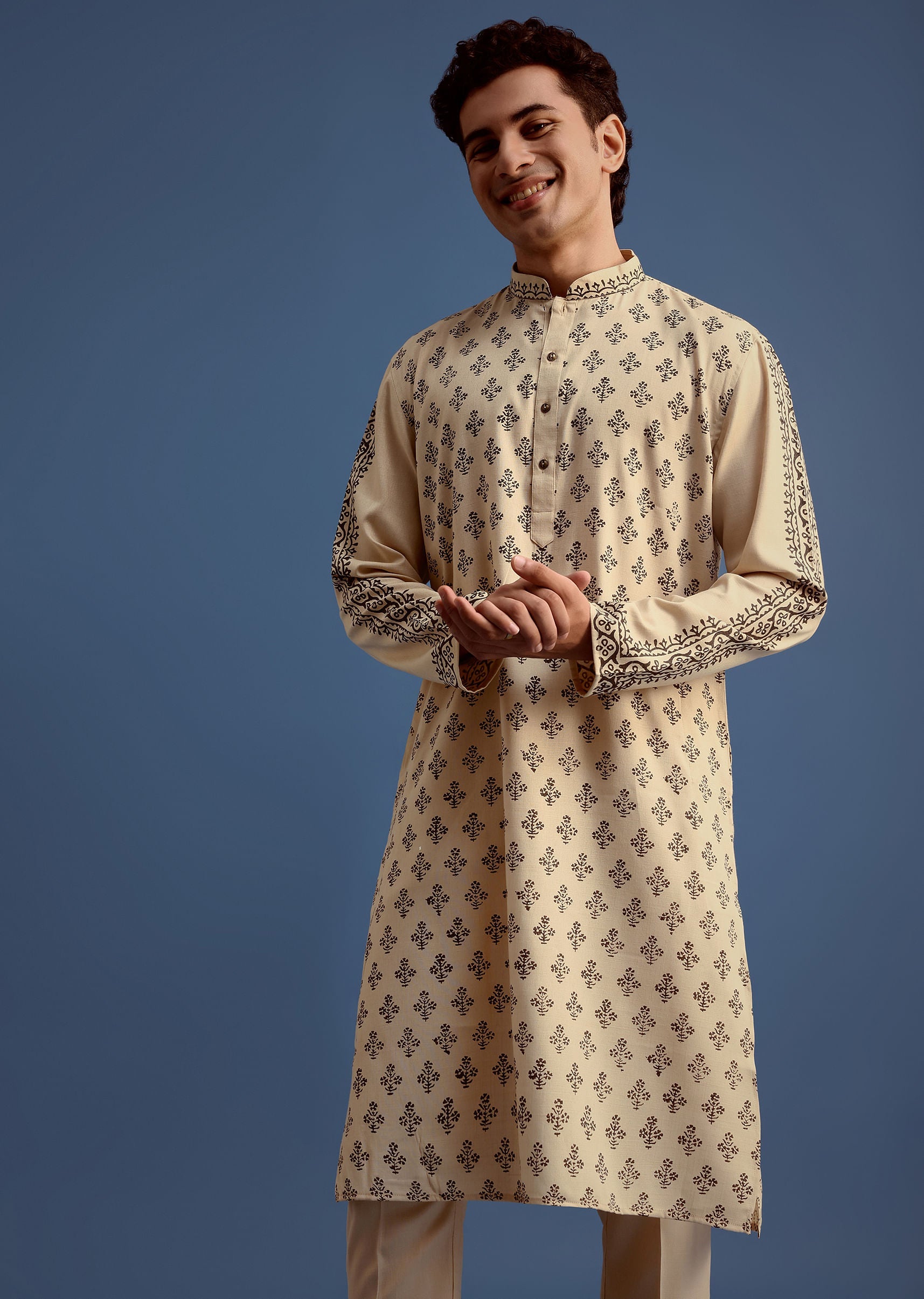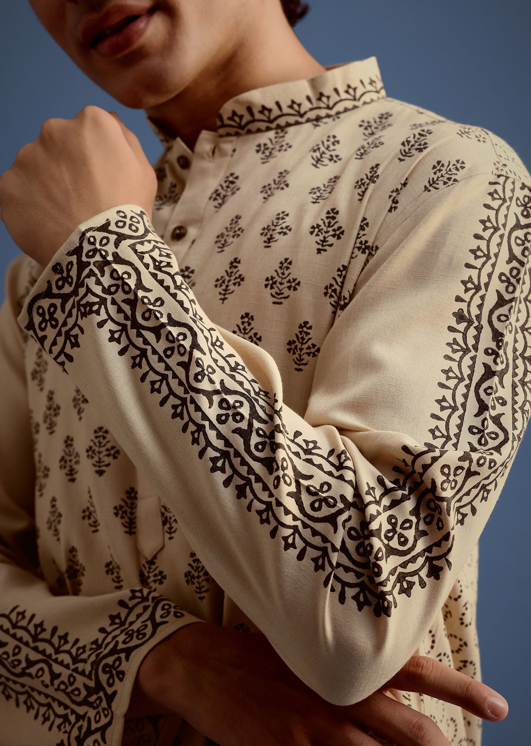 A visually appealing kurta set to make you stand out from the crowd. Exqusite artistry of Indian craftsmanship with our beige hand block printed kurta set. This masterpiece combines the beauty of traditional artists' hand block printing with the delicacy of the Indian Handicrafts creating a truly unique and luxurious ensemble. Perfect for festive occasions and family gatherings. This kurta comes with a pant. Awarded as the Most Trusted Brand, we're delivering styles you love, just as promised.