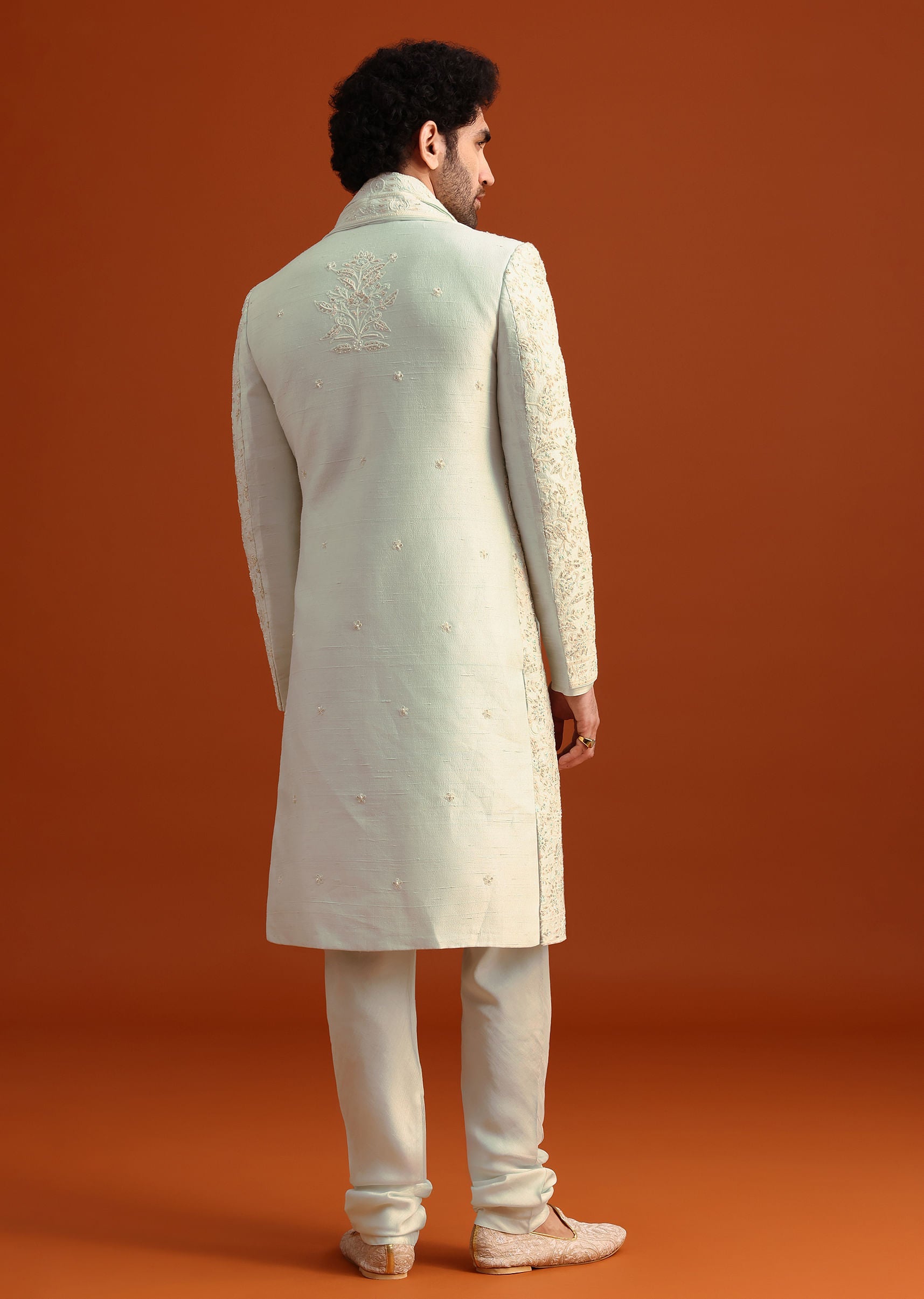 - Perfect for the grandest of celebrations this etheral sherwani set boasts of rich craftsmanship and traditional artistry.