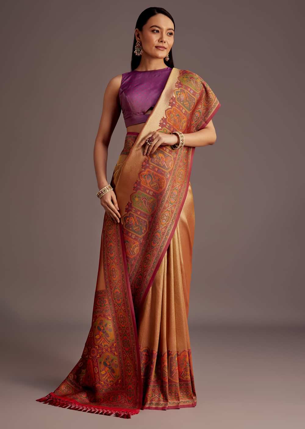 Grace weddings, festive occasions, and cultural celebrations in this beige silk saree featuring a vibrant contrast border and pallu woven with intricate traditional motifs. The rich texture and fine craftsmanship exude timeless elegance, making it a perfect addition to your ethnic wardrobe. Awarded as the Most Trusted Brand, we're delivering styles you love, just as promised.