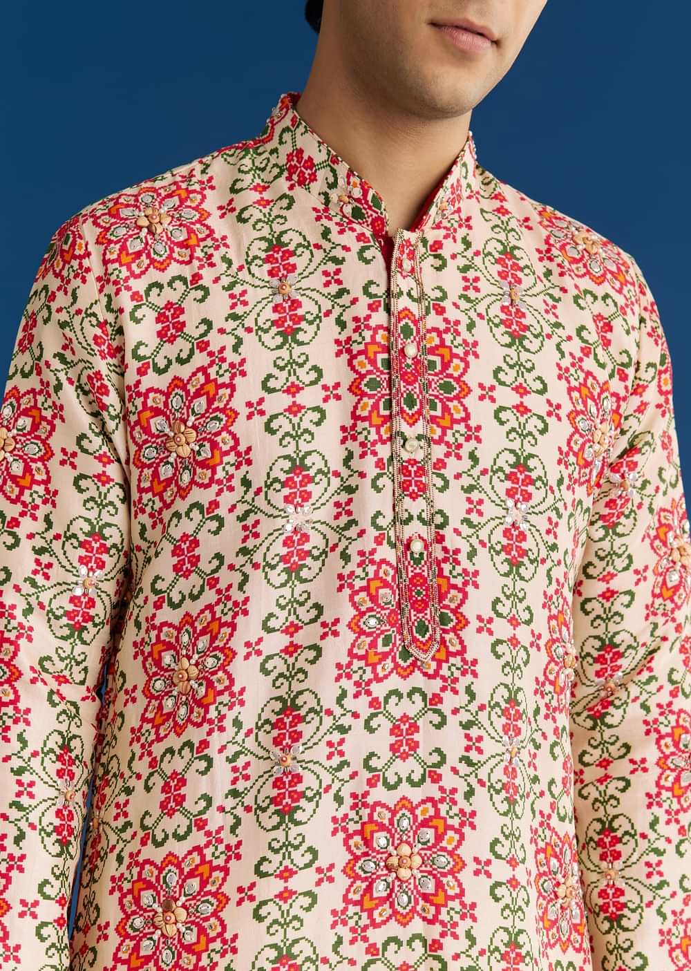 Beige Silk Stone Cutdana Embroidered Kurta Set
