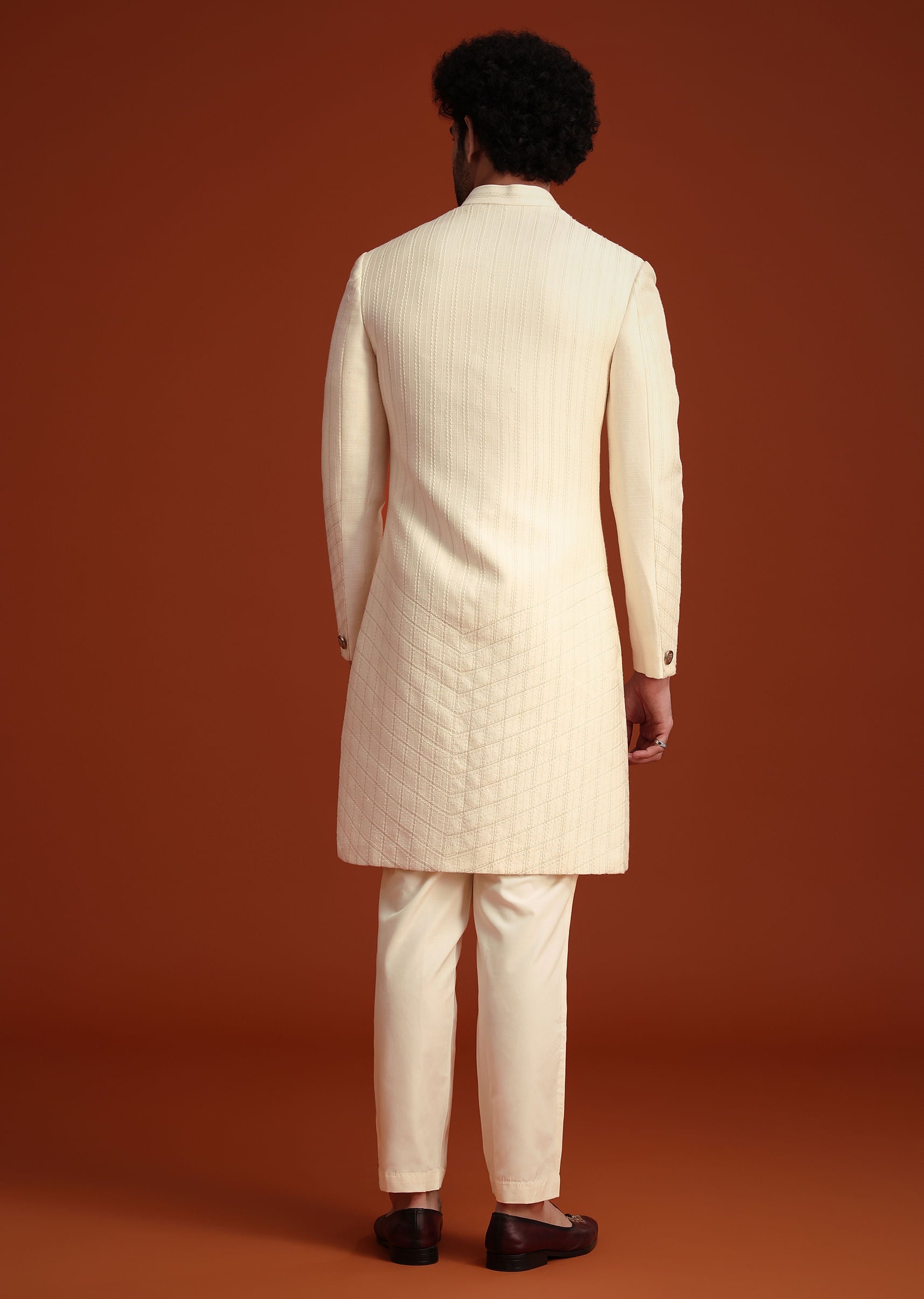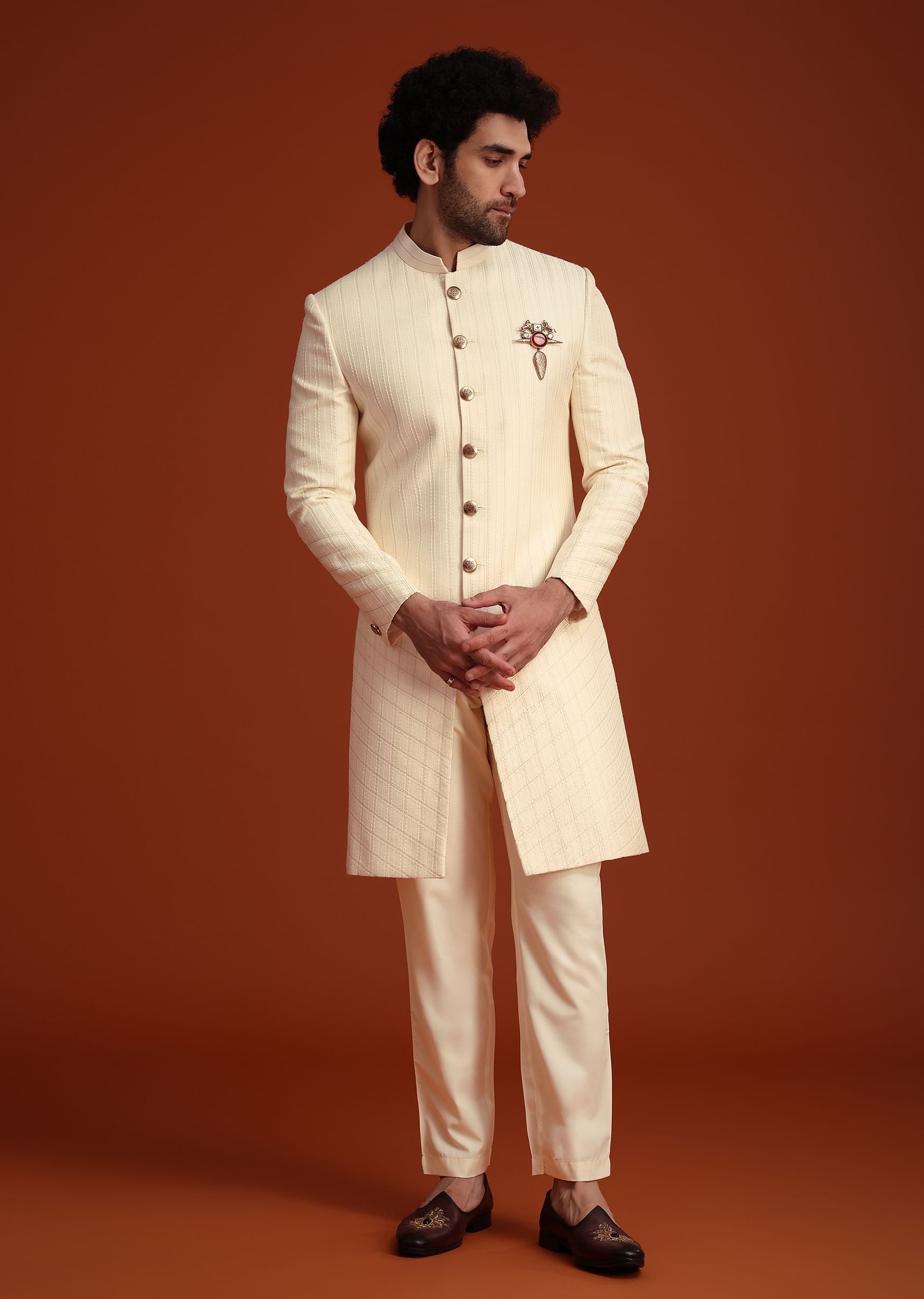 Fit Tips:The tailored fit of this sherwani offers a sharp silhouette, ideal for slim to medium body types.