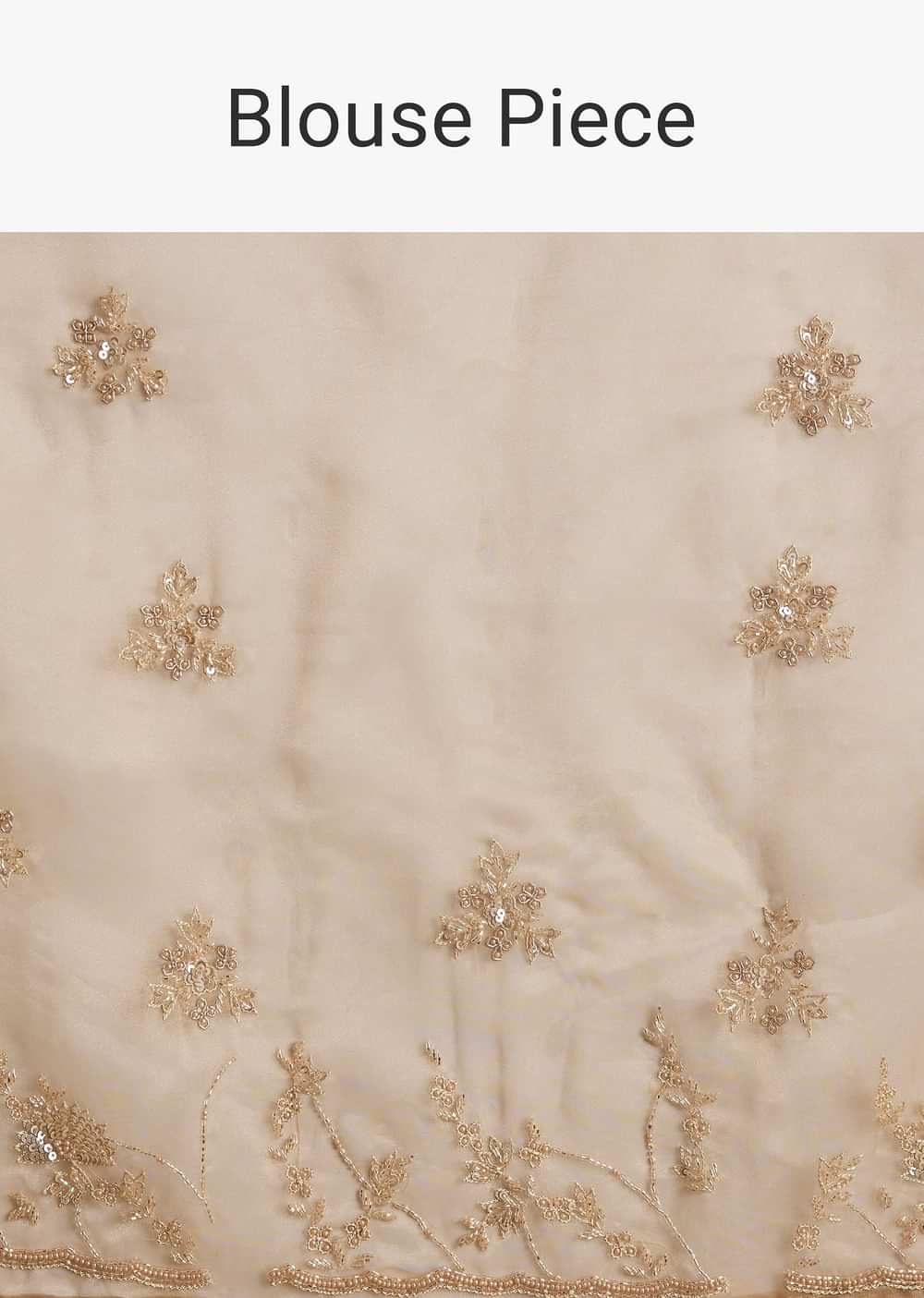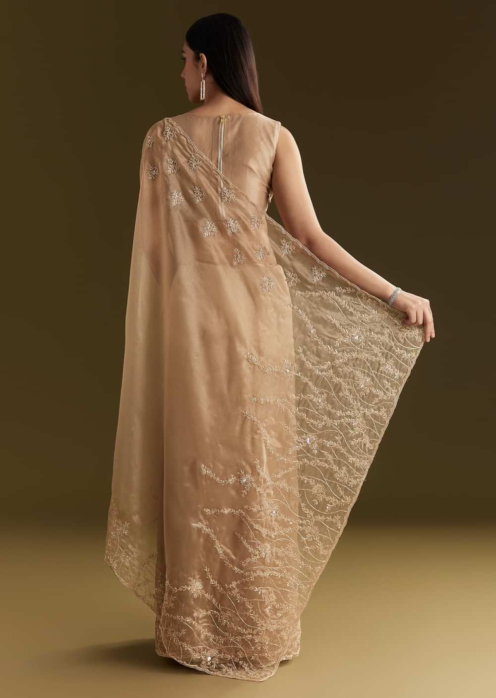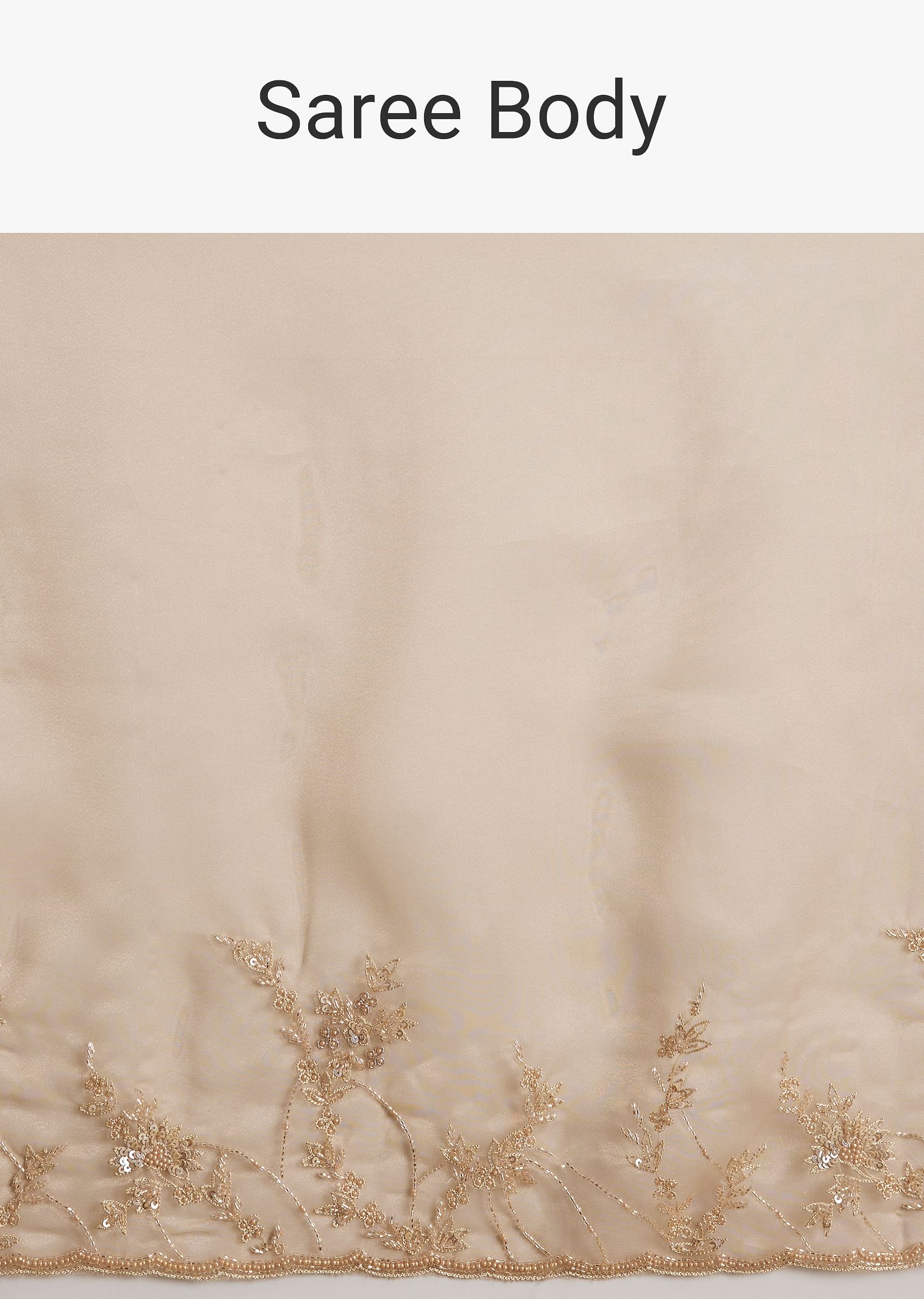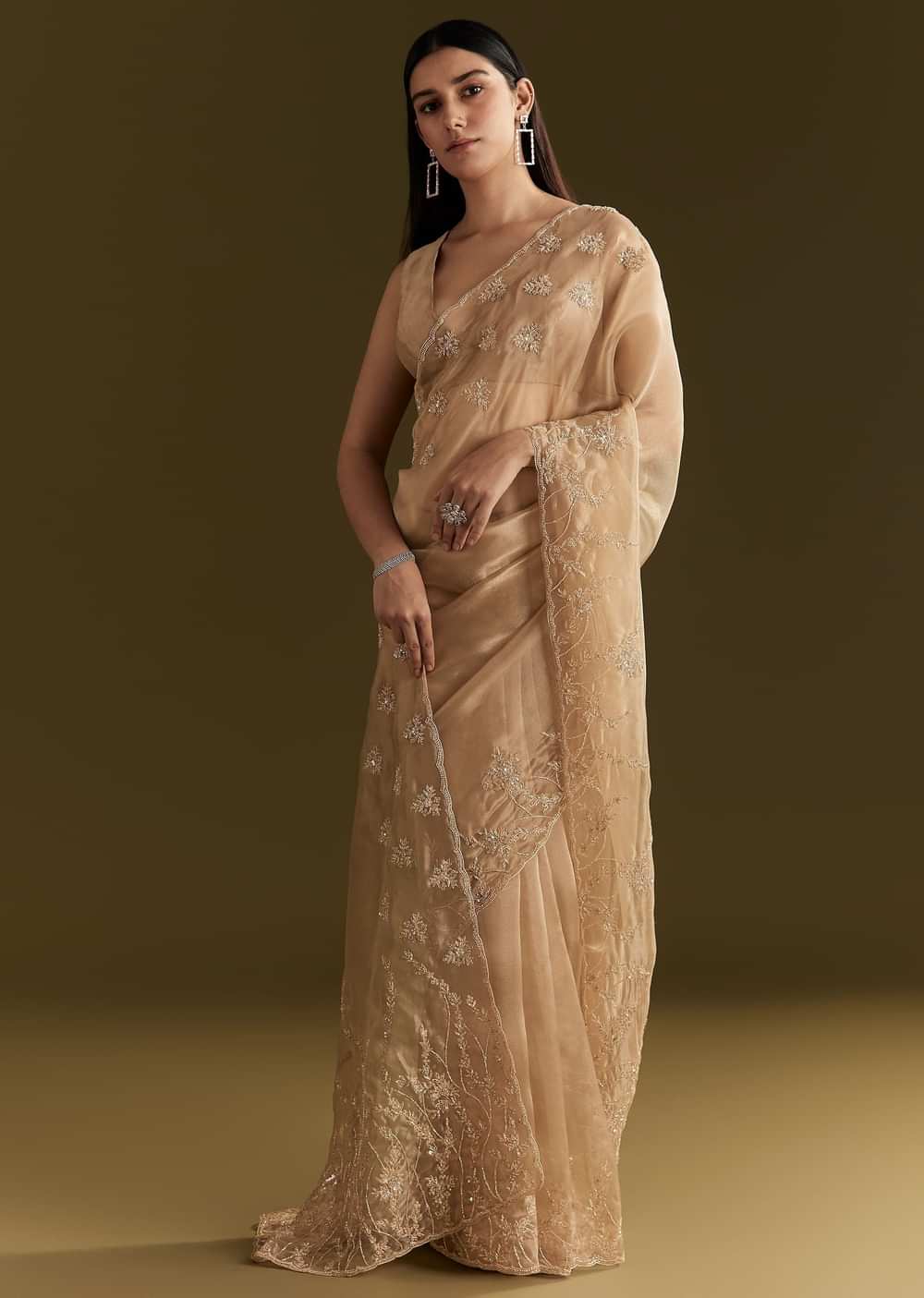 Beige Tissue Saree With Heavy Cutdana And Beads Embroidery