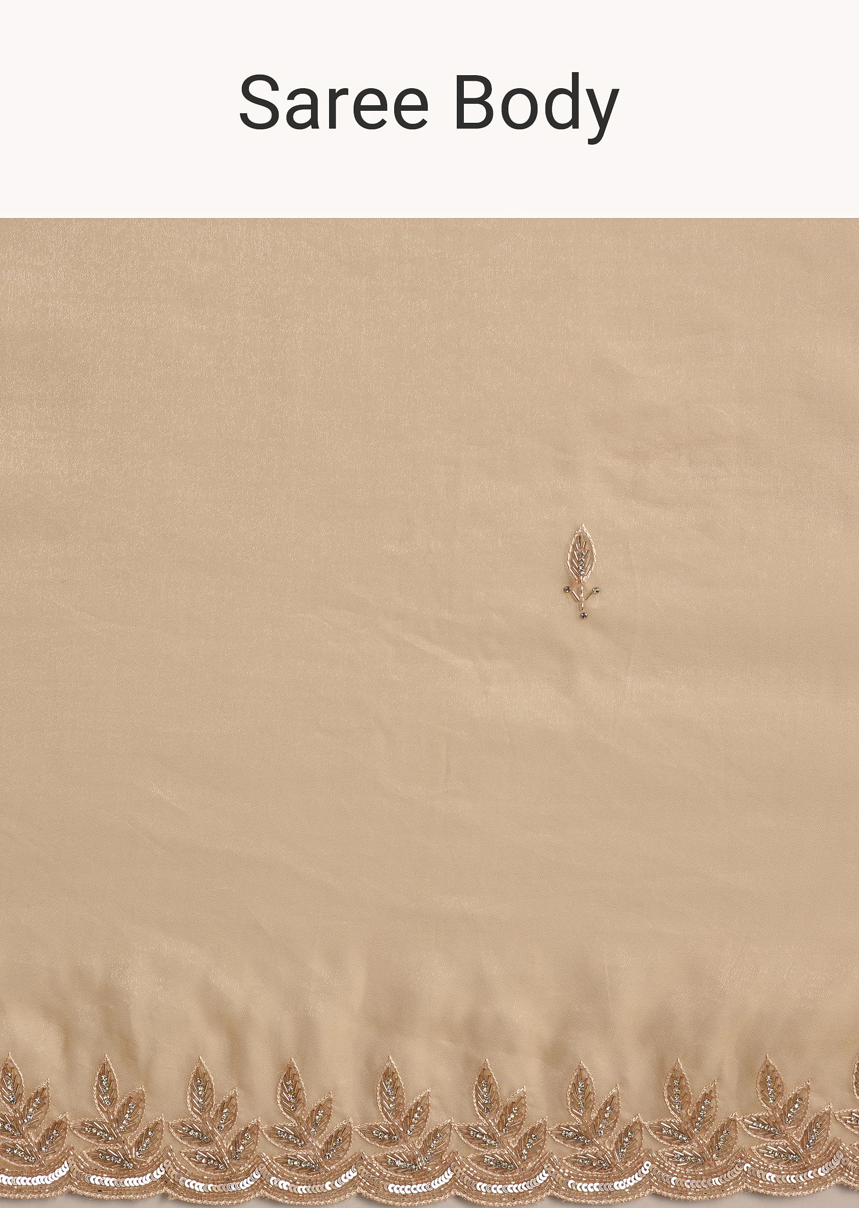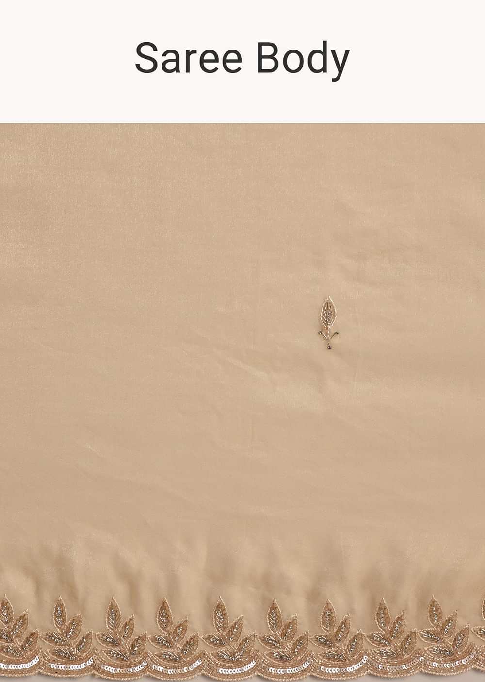Beige Tissue Saree With Leaf Motif Embroidery In Sequins And Cutdana