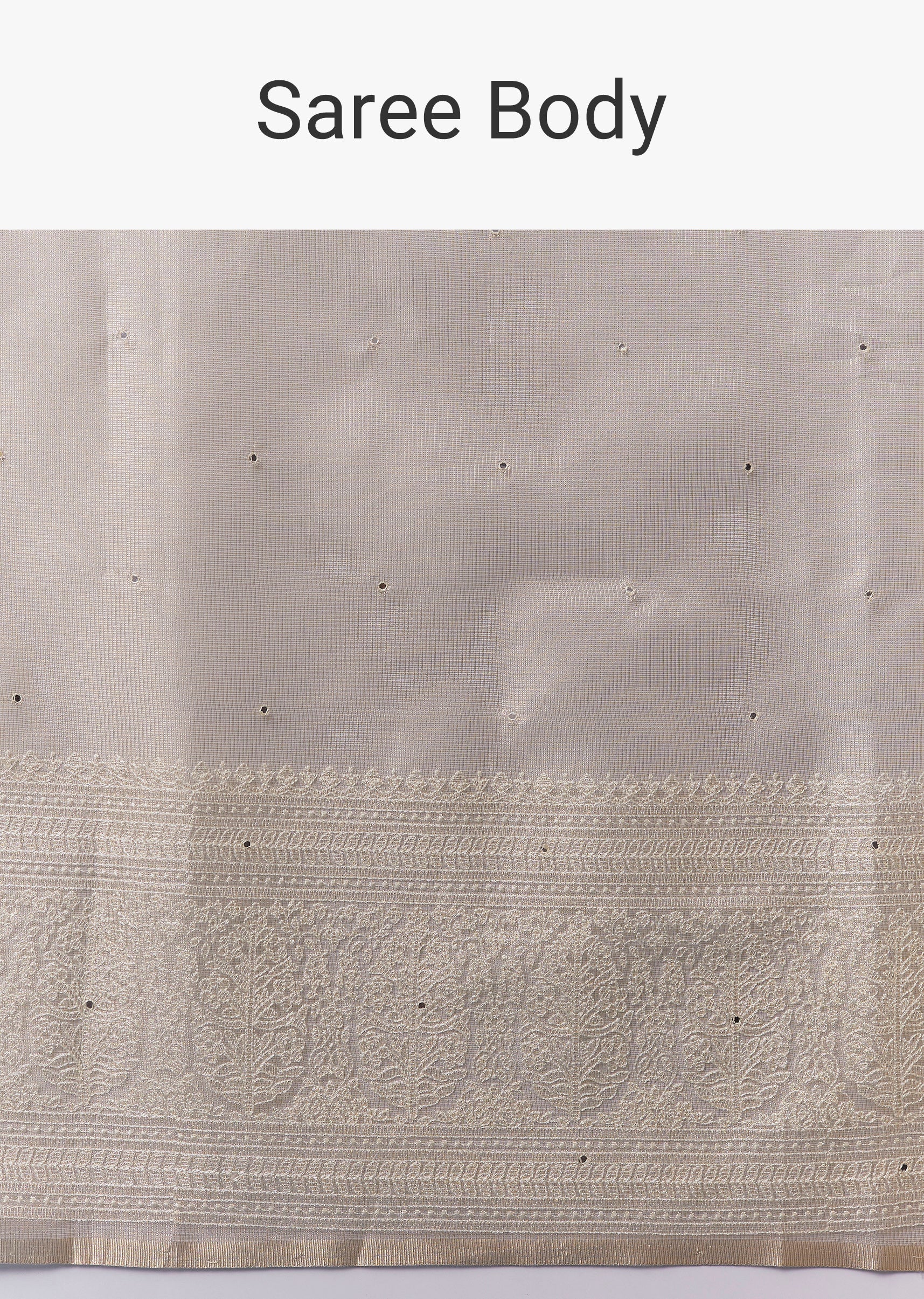 Beige Tissue Saree With Resham Thread Border And Mirror Work