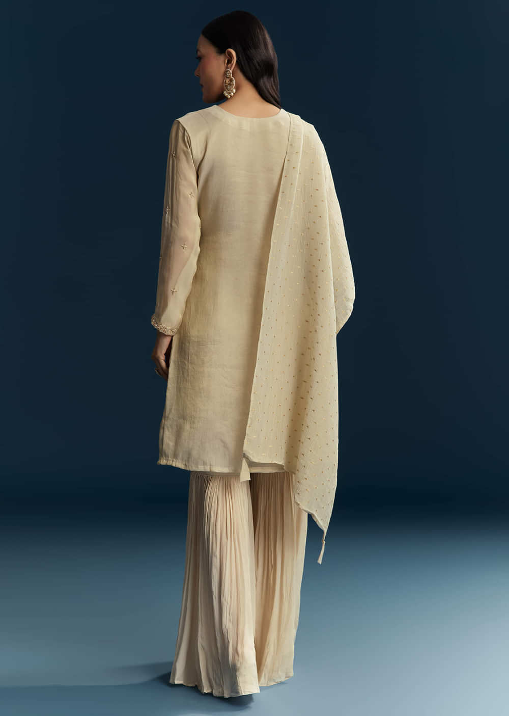Beige Tissue Sharara Suit With Zardosi And Thread Work