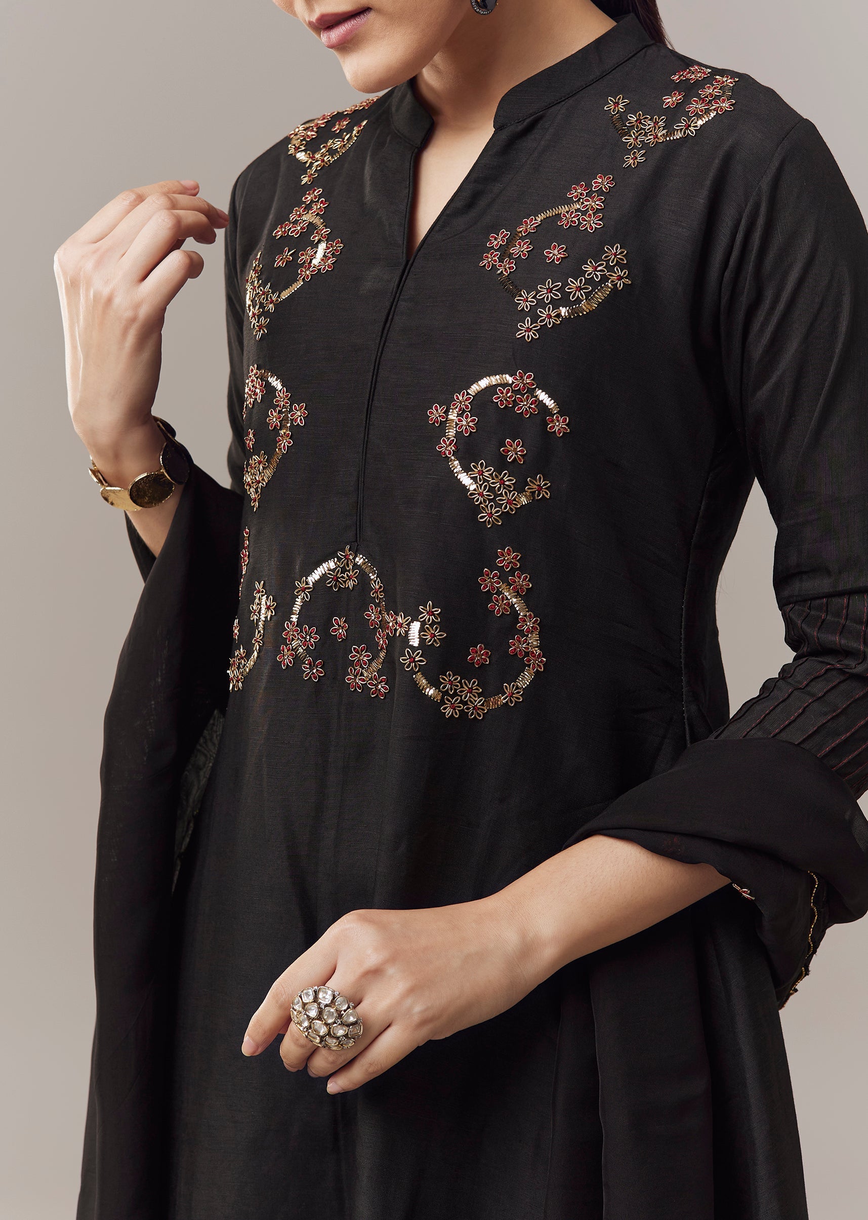 Black Anarkali Suit With French Knot And Zardosi Hand Work And Dupatta